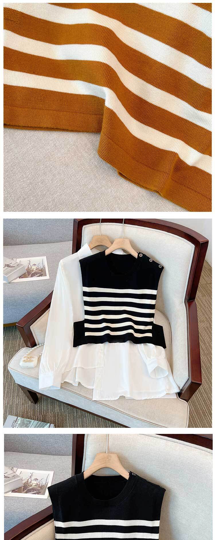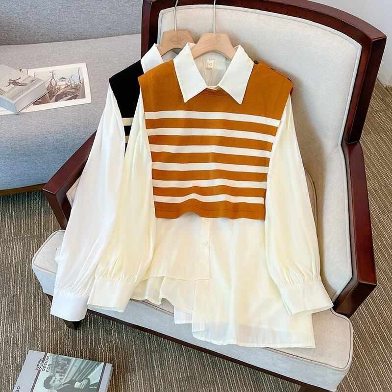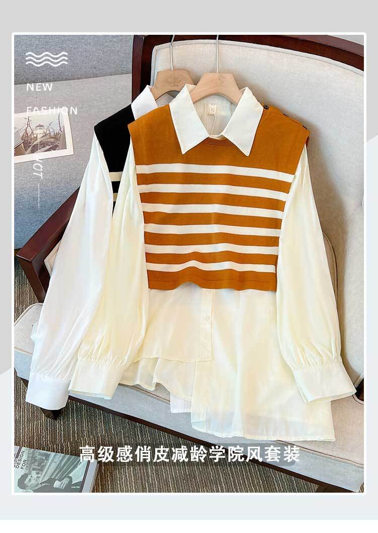 プラスサイズの婦人服 2023 春の新しいファットシスターシックなストライプのベスト無地不規則なシャツ 2 点セット 大きめサイズ スプリング 春物 ソリッドカラー 8884178412317352
