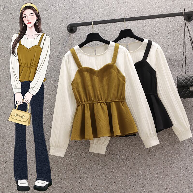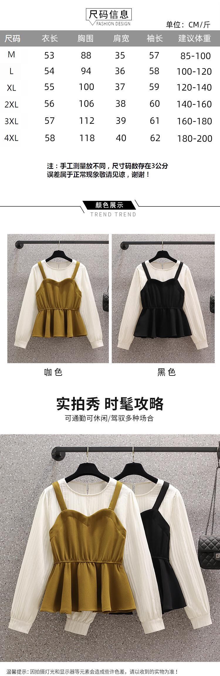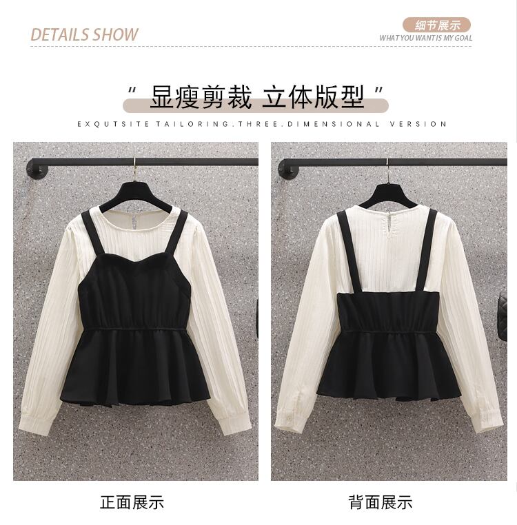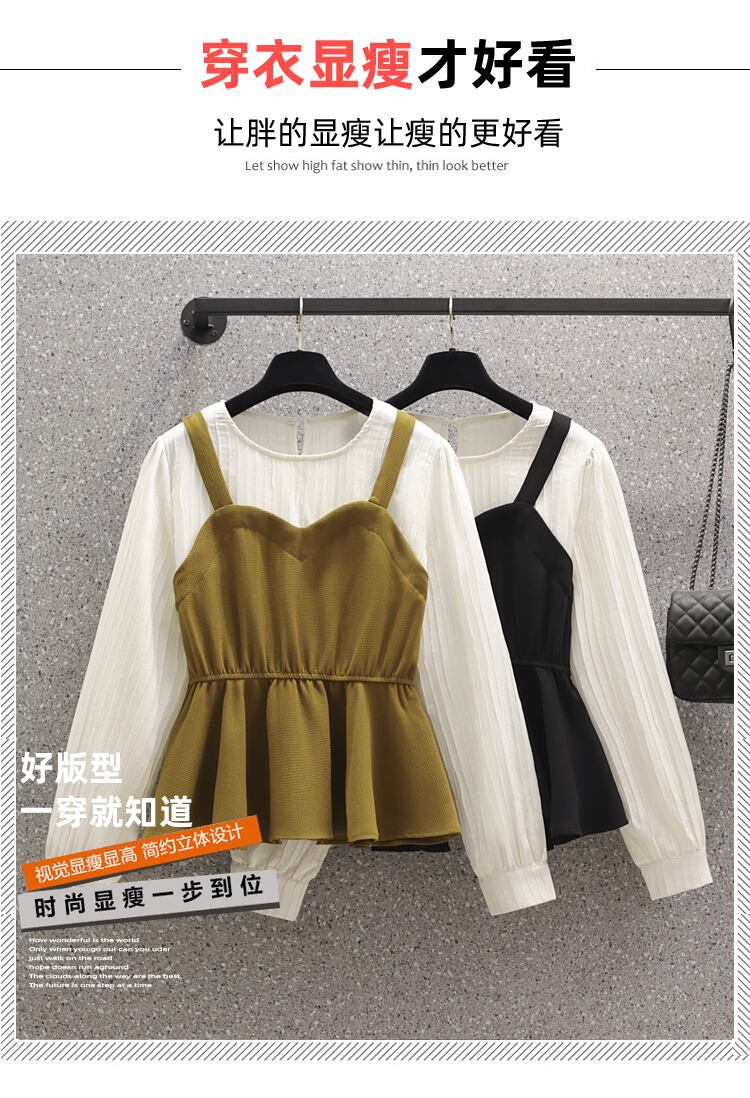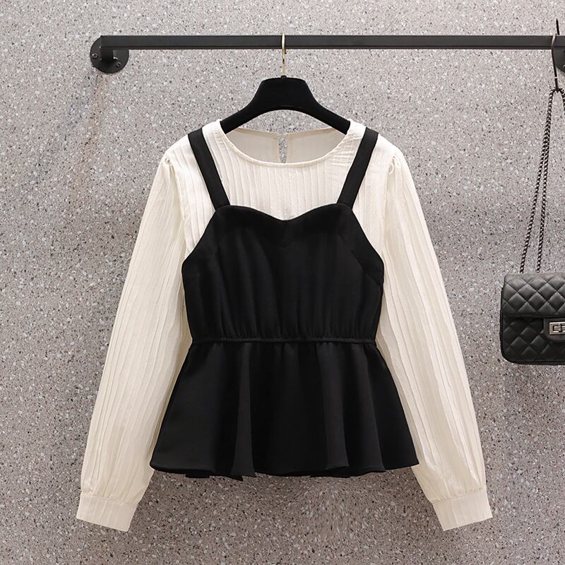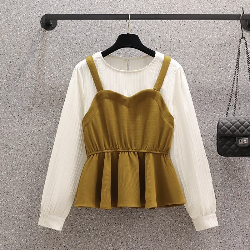 大きいサイズの婦人服 2023 春の新しい太った姉妹ワイルド フレンチ フェイク ツーピース ファッショナブルな年齢を減らす薄いトップの女性 大きめサイズ スプリング 春物 8884194785528848