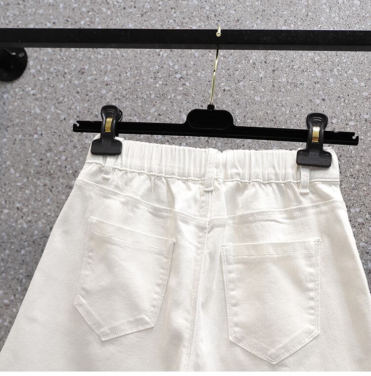 大サイズの婦人服 2023 夏新ファットシスターハイウエスト弾性痩身ヒップカバーデニムワイドレッグパンツ女性 ハイウェスト エラスティック 伸縮 大きめサイズ サマー 夏物 8884180261894399