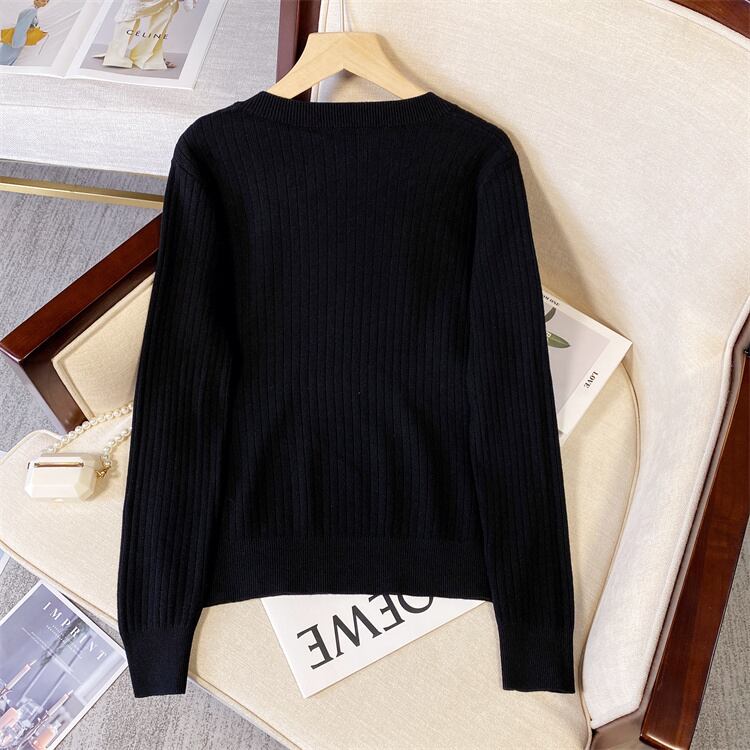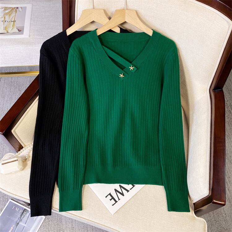 大きいサイズの婦人服 2023 春の新しいスタイルの太った姉妹は、よりスリムに見え、年齢を減らすデザインセンスのシックな無地のオールマッチニットセーターの女性 大きめサイズ スプリング 春物 ソリッドカラー 888412207777153