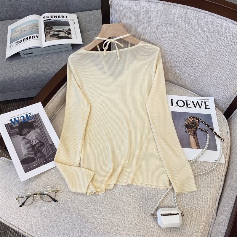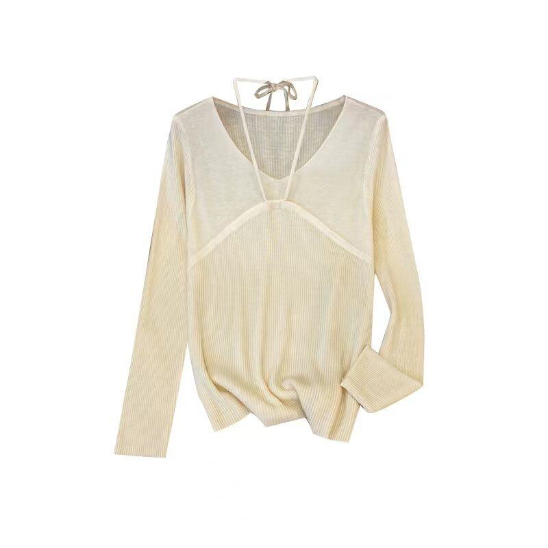 大きいサイズの婦人服 2023 トレンディな女性の春の新しいファット シスター ピュアな気をつけたいという願望マシン ネクタイ ハンギング ネック eign スタイル ニッチ ニットウェア 大きめサイズ スプリング 春物 8884139642606370