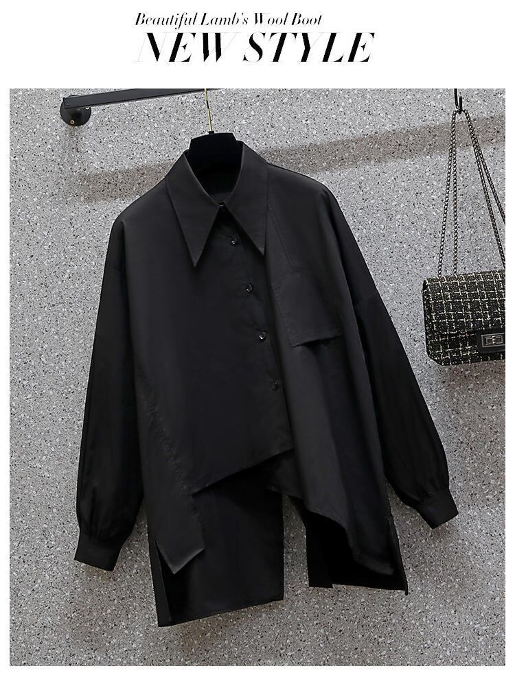 プラスサイズの婦人服、不規則なニッチ、お腹を覆う薄い層のシャツ2023春の新しい太った姉妹の無地のシャツ レッド 大きめサイズ スプリング 春物 ソリッドカラー 8884133068917526