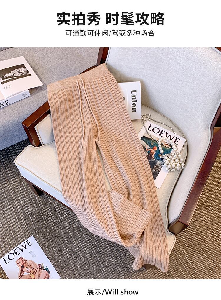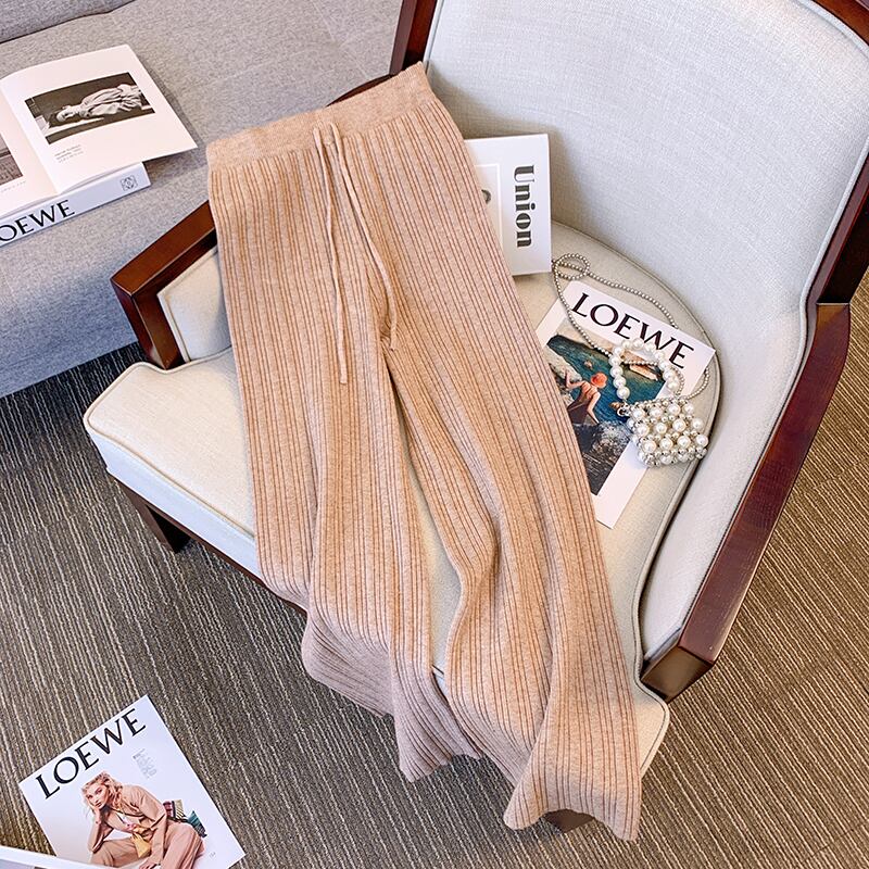 大きいサイズの婦人服 2023 トレンディな女性の春の新しいファットシスターファッション薄いハイウエストぶら下げニットワイドレッグカジュアルパンツ ハイウェスト 大きめサイズ スプリング 春物 8884151987340607