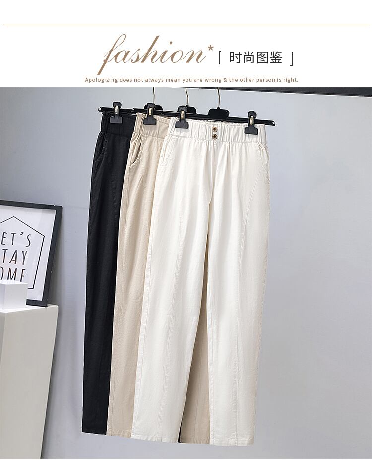 プラスサイズの婦人服 2023 ファットシスター夏の新しいシンプルなワイドレッグパンツハイウエストカジュアルルーズストレートレッグハーレムパンツ ハイウェスト 大きめサイズ サマー 夏物 8884170385673802
