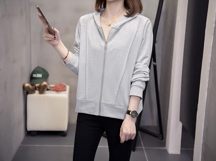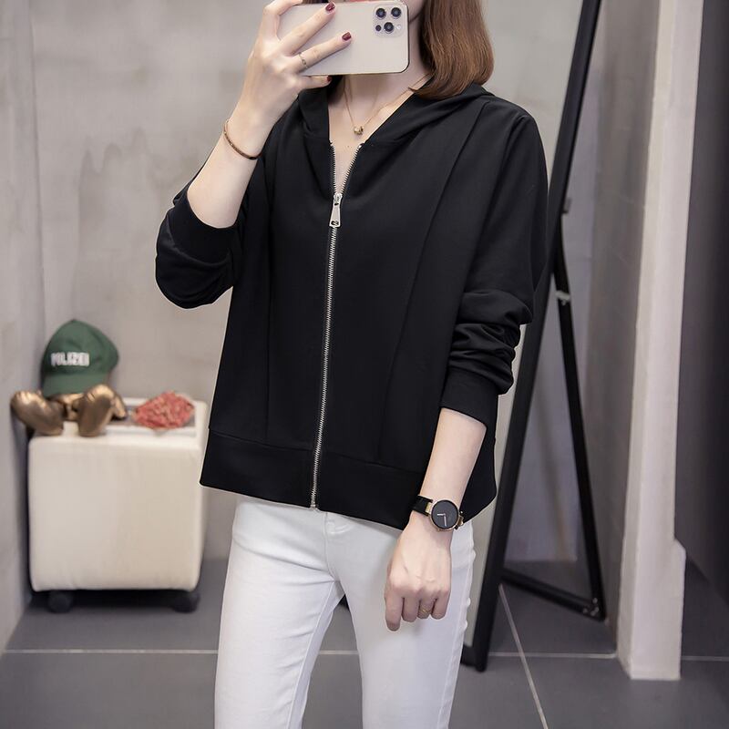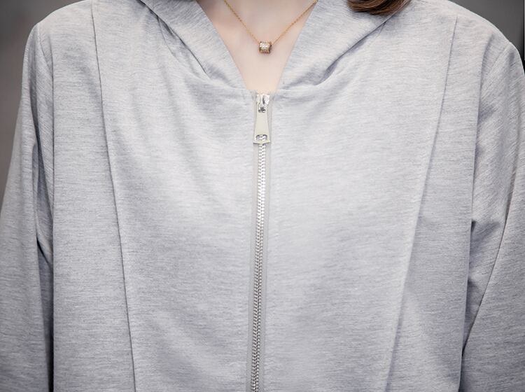 プラスサイズの婦人服 2023 春の新ファットシスターカバー肉緩いジッパーカーディガンオールマッチ薄いフード付きトップ女性 大きめサイズ スプリング 春物 8884142590820334