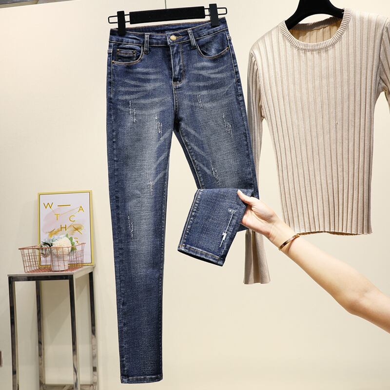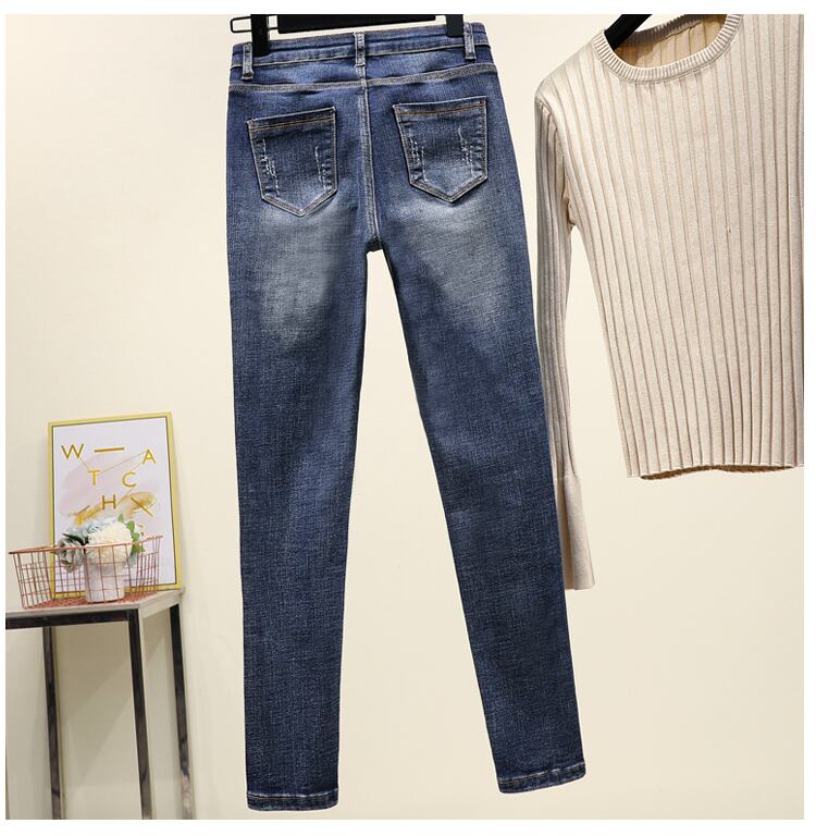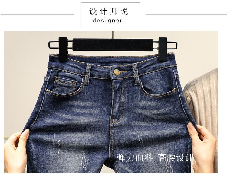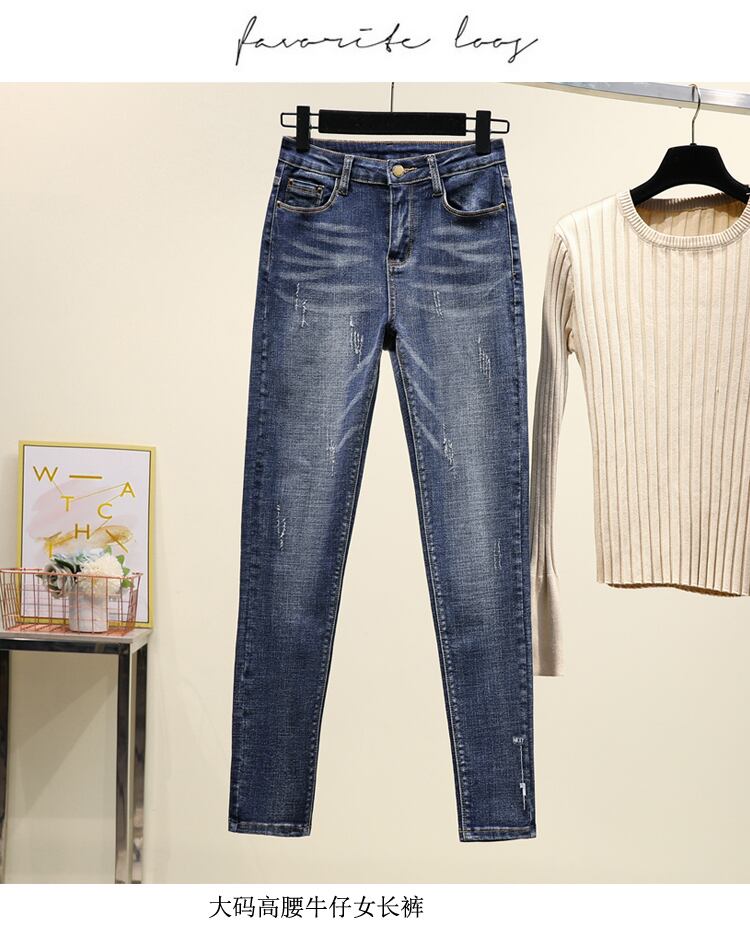プラスサイズの婦人服 2023 脂肪姉妹春の新ファッションハイウエスト弾性とげさびジーンズ小さな足のズボンの女性 ハイウェスト エラスティック 伸縮 大きめサイズ スプリング 春物 8884191584356916