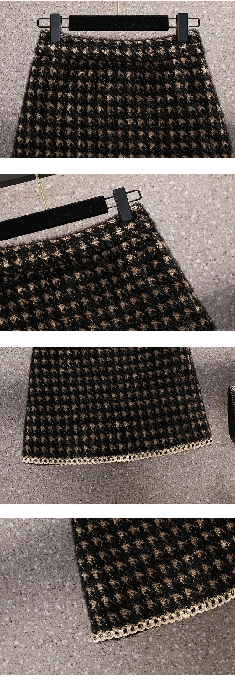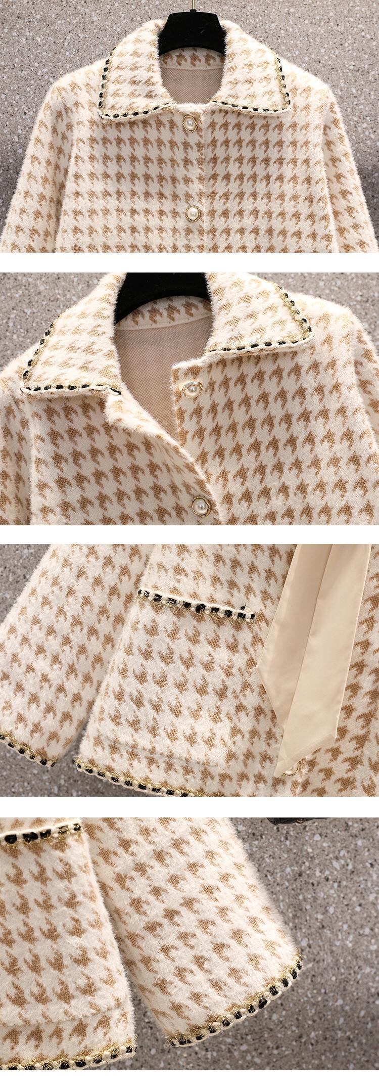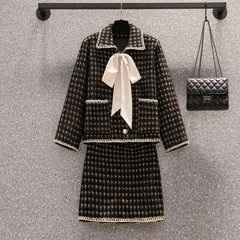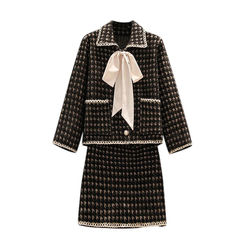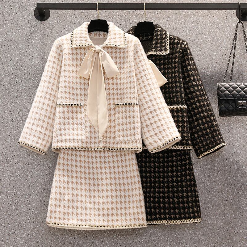 プラスサイズの婦人服 2023 ファットシスター春の新千鳥格子蝶ネクタイラペルスカート 2 点セット リボン 大きめサイズ スプリング 春物 8884179164561093