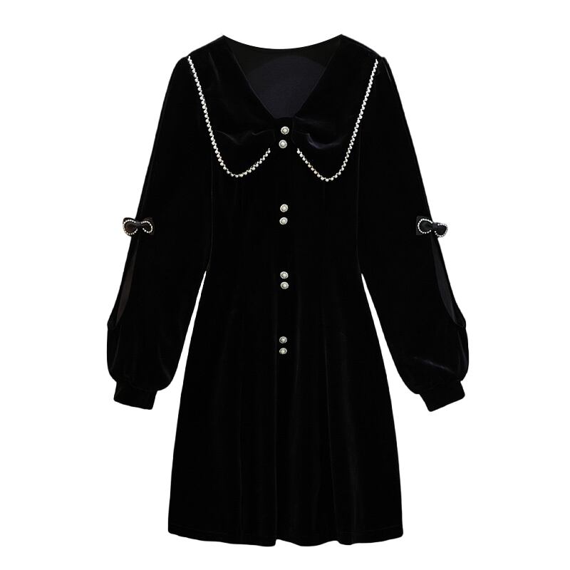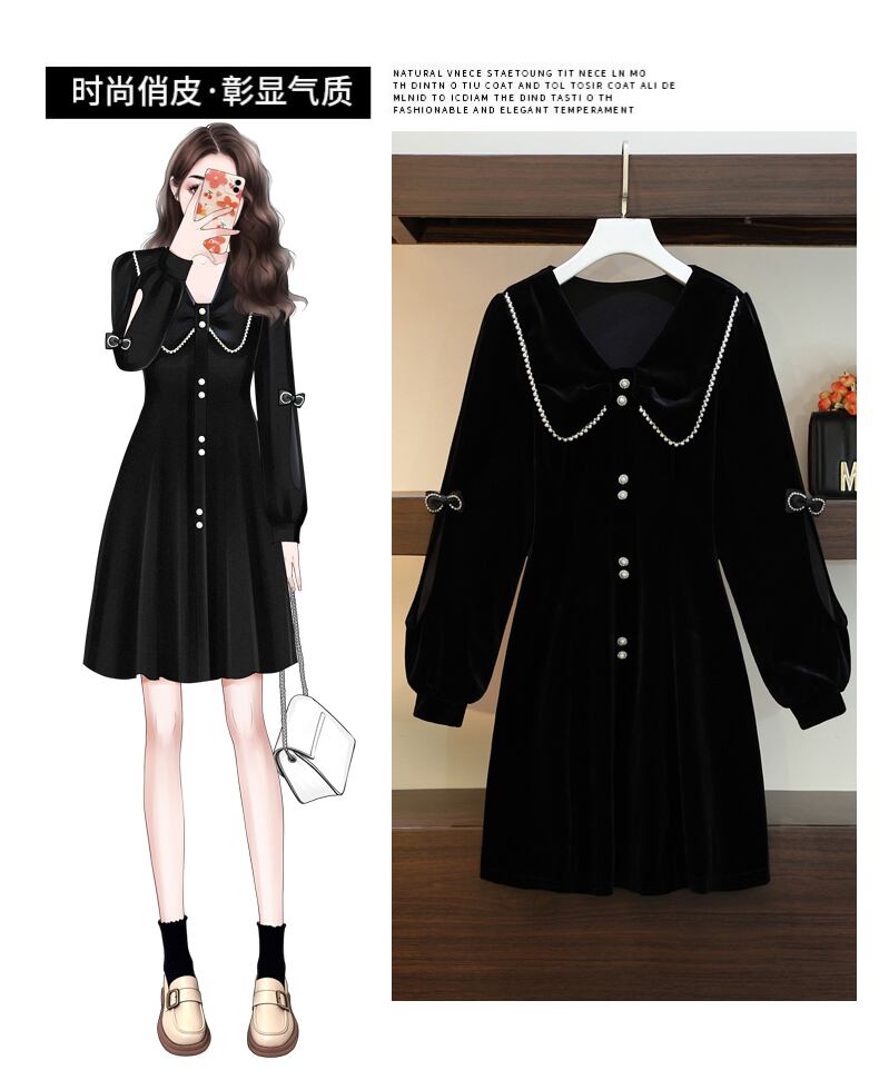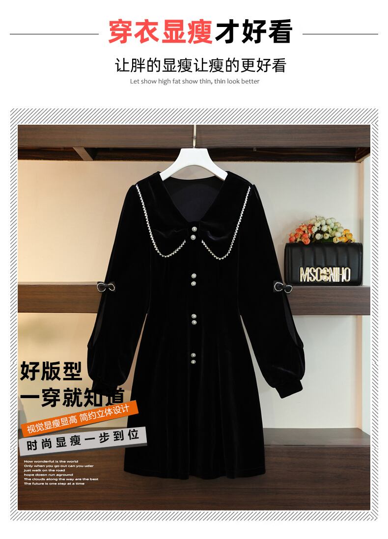 プラスサイズの婦人服 2023 ファットシスター春の新しい eign スタイル年齢を減らすウエスト痩身人形の襟長袖のドレスの女性 ロング 大きめサイズ スプリング 春物 8884185863848814