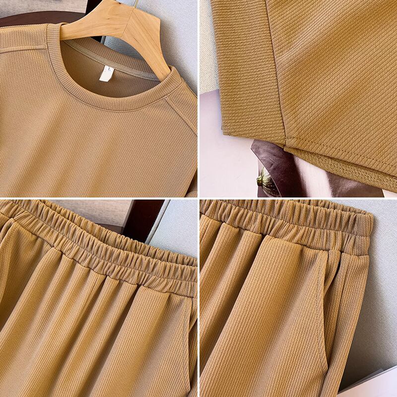 大きいサイズの婦人服 2023 春服 太った姉妹 新しいファッション オールマッチ 薄い イレギュラー トップ ワイドレッグ パンツ 2点セット 大きめサイズ スプリング 春物 8884168012083897