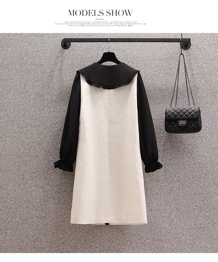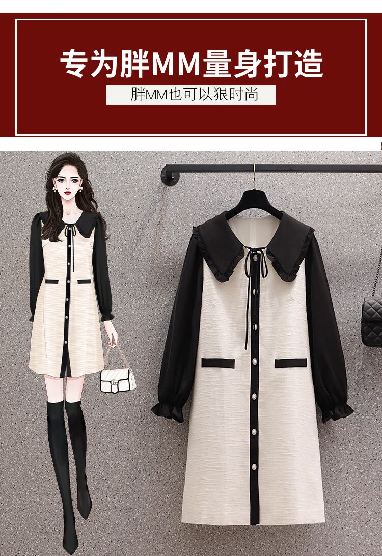 プラスサイズの婦人服 2023 春の新しいファットシスター eign スタイルの人形の襟のカラーマッチング緩いファッション年齢を減らすドレススカート 大きめサイズ スプリング 春物 8884196498071231