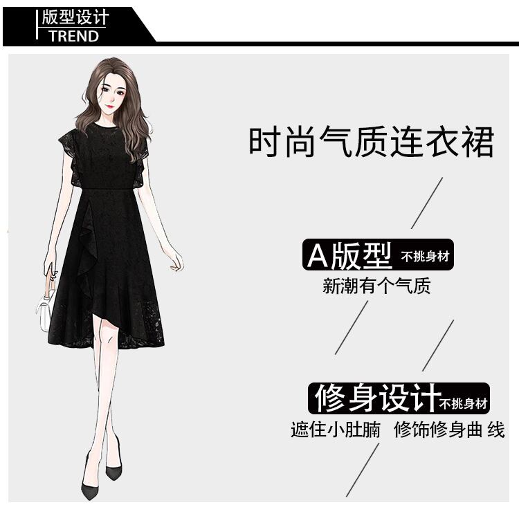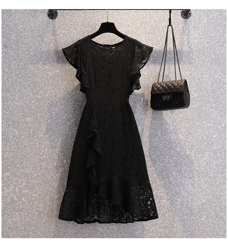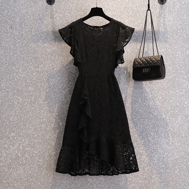 プラスサイズの婦人服 2023 新しい夏服脂肪姉妹新しいファッション薄い気質ラウンドネック半袖レースのドレスの女性 大きめサイズ サマー 夏物 Oネック 8884196163473496