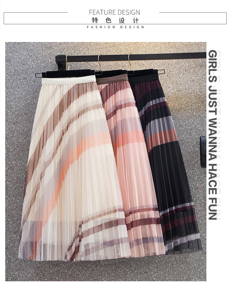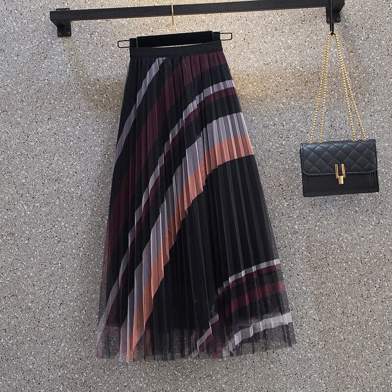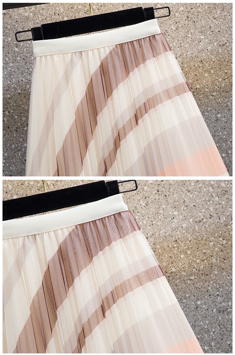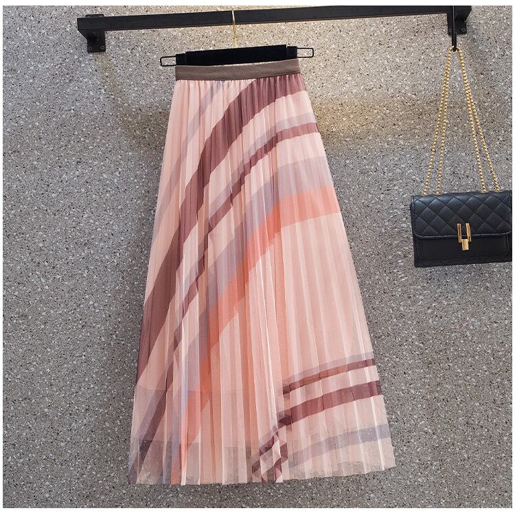 大きいサイズの婦人服2023春服ファットシスターズの新しいスタイルのeignスタイルの配色プリーツミッドレングスメッシュフェアリースカート 大きめサイズ スプリング 春物 8884161127915243