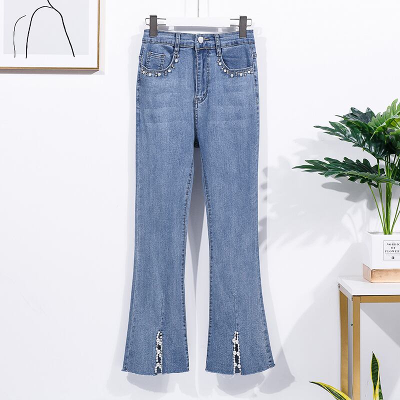 プラスサイズの婦人服 2023 春服脂肪姉妹新しいファッションハイウエスト痩身と年齢を減らすルーズオールマッチジーンズ女性 ハイウェスト 大きめサイズ スプリング 春物 8884189373734995