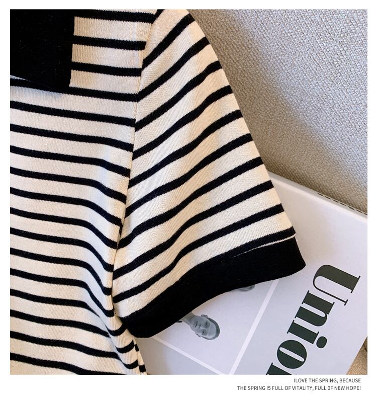 プラスサイズの婦人服 2023 夏の新しいファットシスターファッションルーズストライプオールマッチデザインセンス年齢削減 Tシャツ女性 大きめサイズ サマー 夏物 8884185352520449