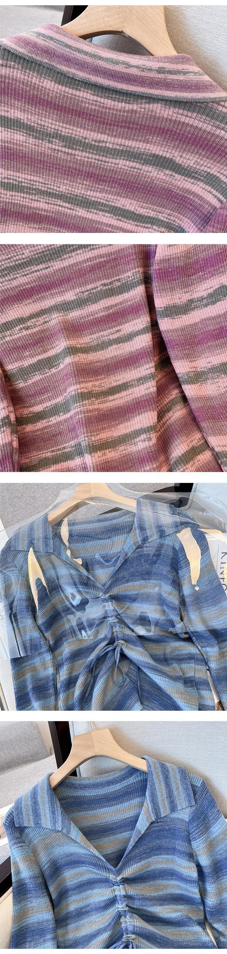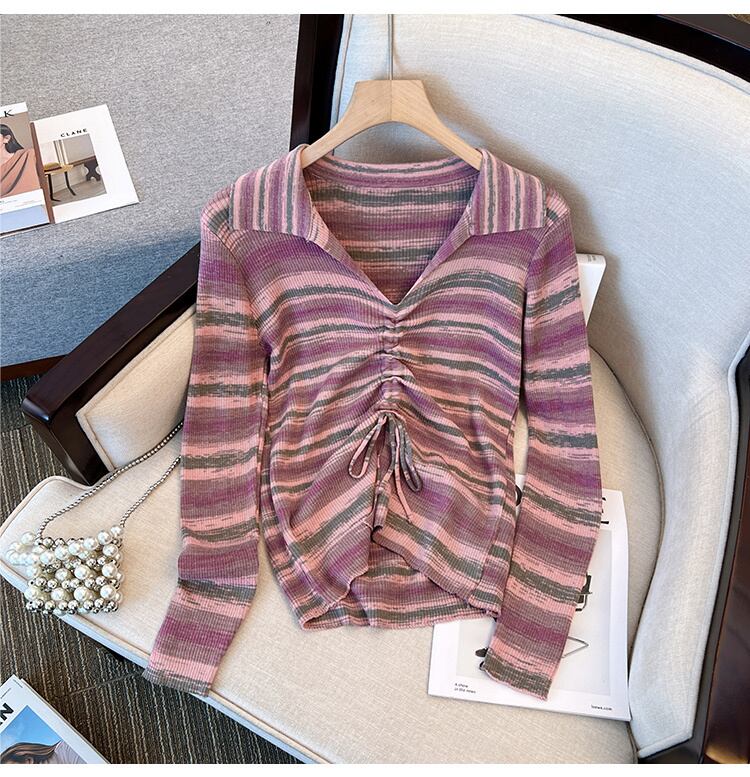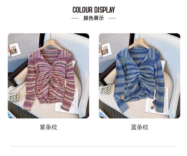 大きいサイズの婦人服 2023 トレンディな女性の春の新しいスタイルの太った妹カバー肉と薄い純粋な欲望ストライプ ファッション デザイン ニット 大きめサイズ スプリング 春物 ピュア 8884135780162271
