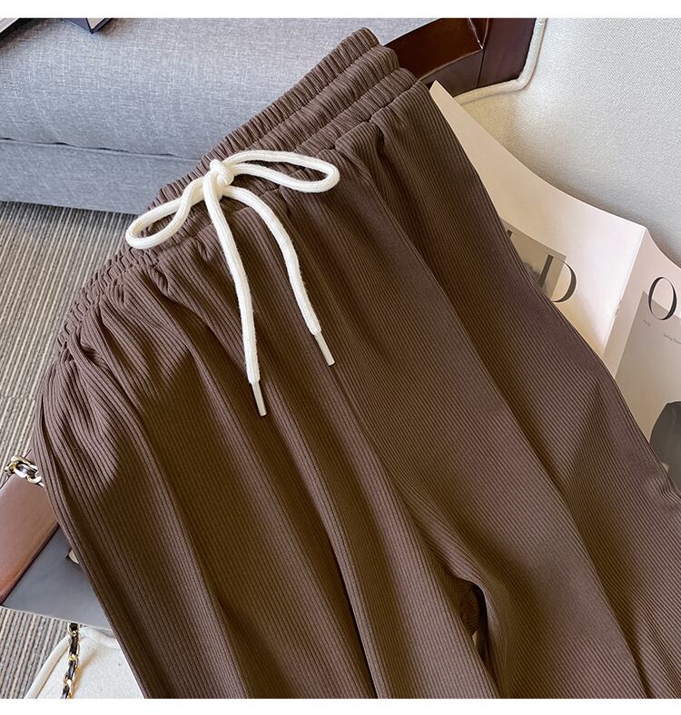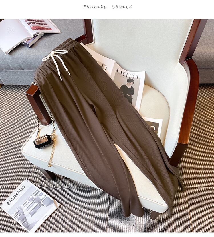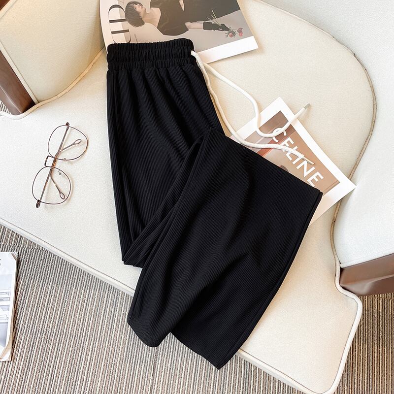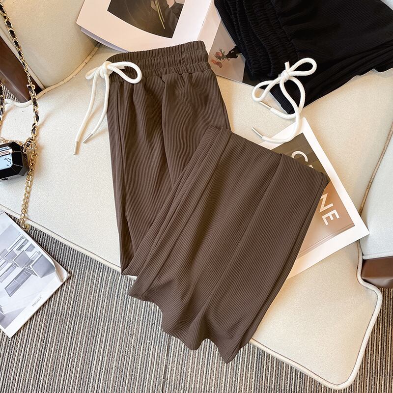プラスサイズの婦人服 2023 ファットシスター春の新オールマッチ年齢引き下げ痩身弾性ウエスト緩いワイドレッグカジュアルパンツ女性 エラスティック 伸縮 大きめサイズ スプリング 春物 8884140319236235
