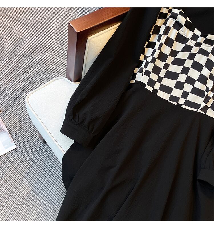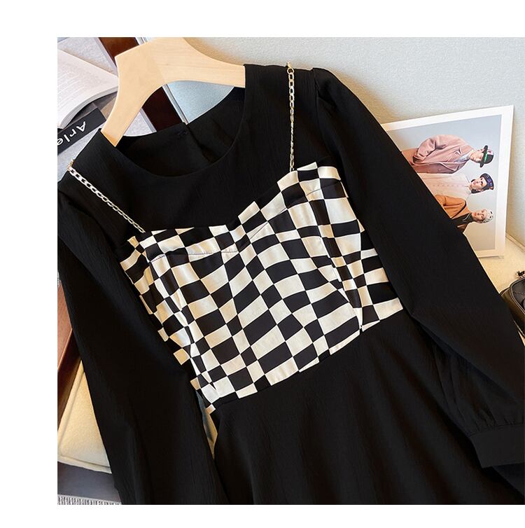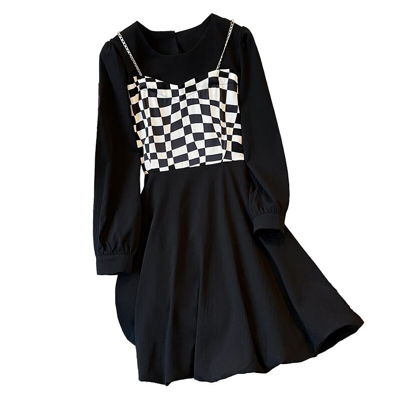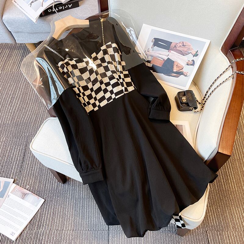 プラスサイズの婦人服 2023 春服脂肪姉妹新しいファッション薄い格子縞のスプライシング偽ツーピースサスペンダードレス 大きめサイズ スプリング 春物 8884122747267522