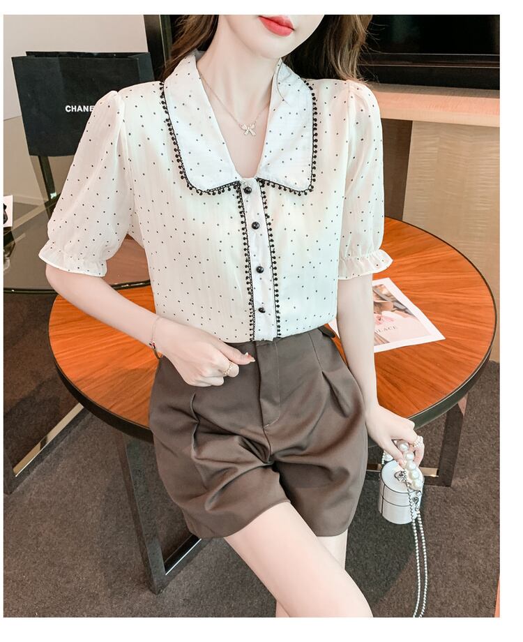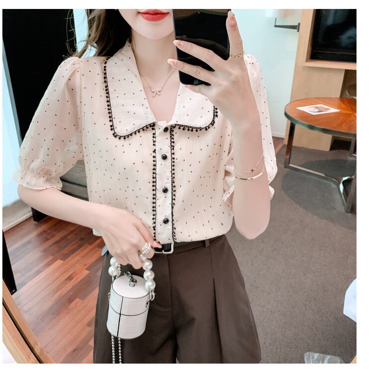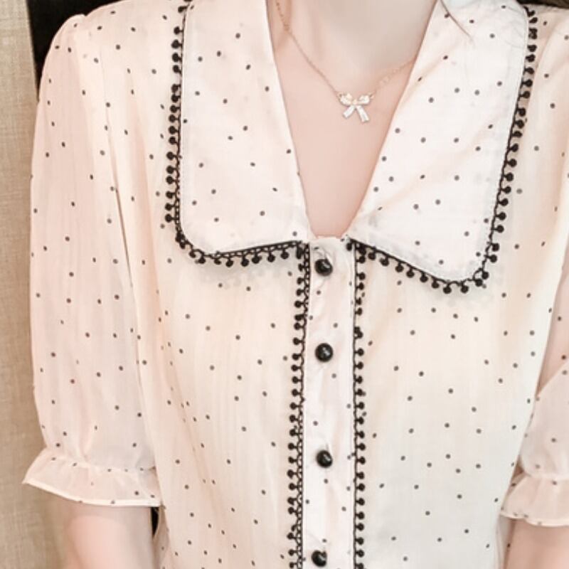 プラスサイズの婦人服 2023 夏の新しい脂肪姉妹の人形の襟水玉シフォンシャツニッチ年齢を減らす気質トップ 大きめサイズ サマー 夏物 888413078706488