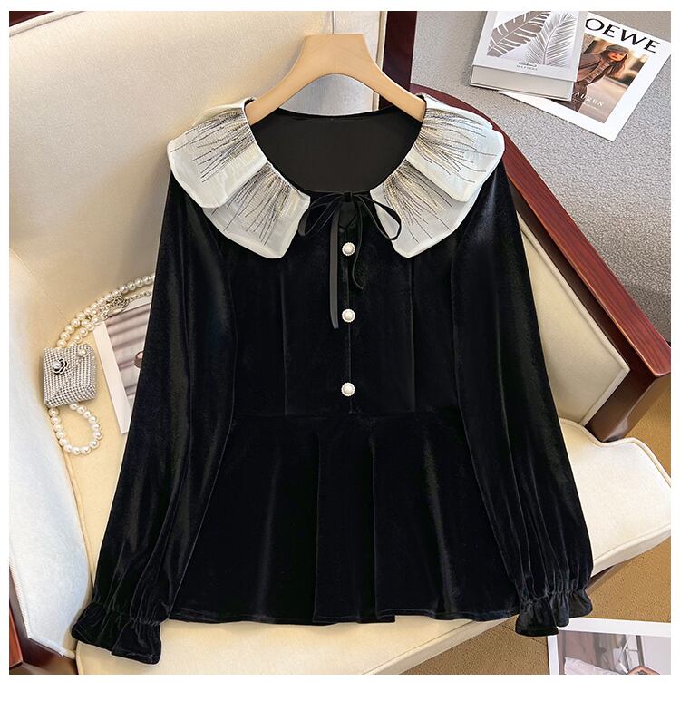 プラスサイズの婦人服 2023 春の新しいスタイルの太った姉妹は、薄いスプライシング人形の襟の気質に見えます。 大きめサイズ スプリング 春物 8884147135388636