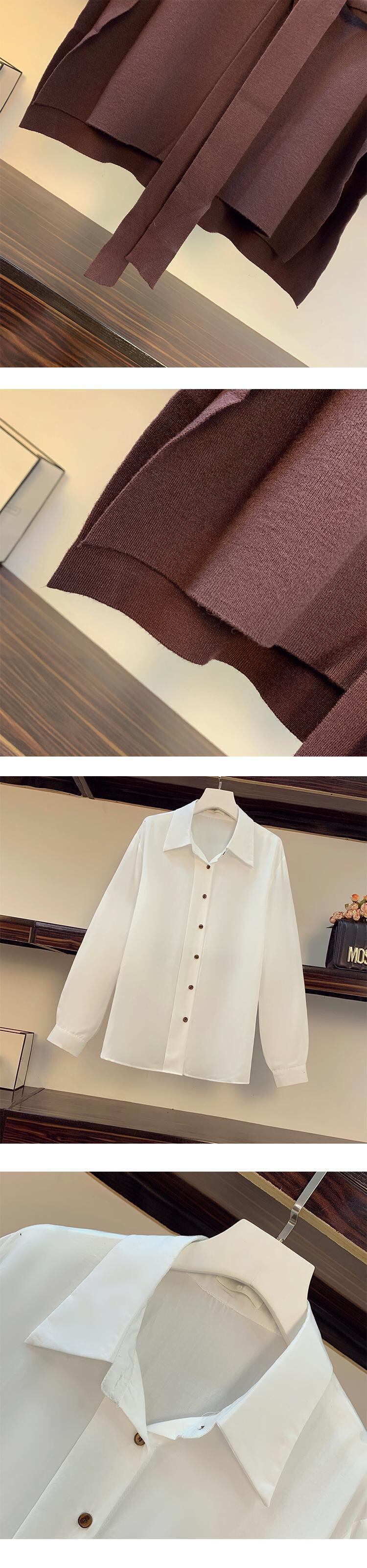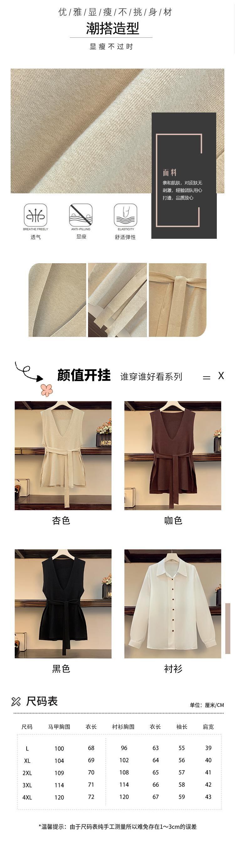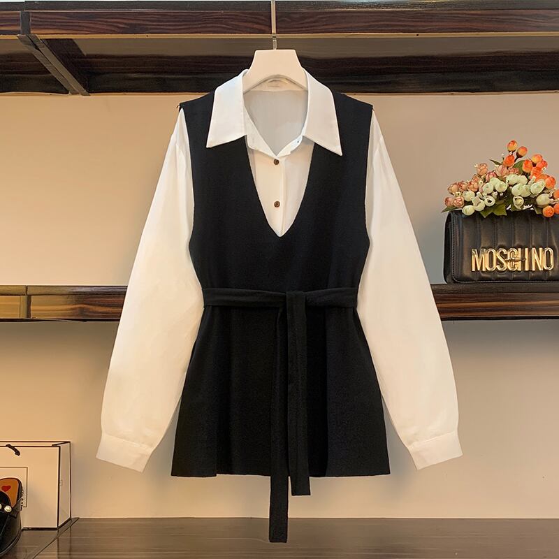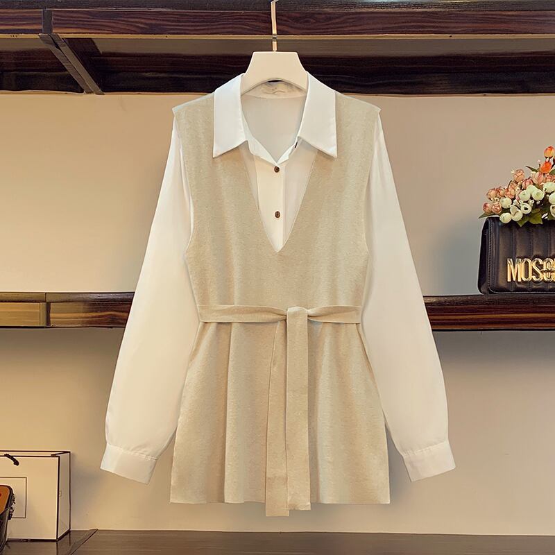 プラスサイズの婦人服 2023 春の新痩身腹カバー ベスト長袖シャツ eign スタイル年齢を減らすツーピース スーツ ロング 大きめサイズ スプリング 春物 8884182335372676