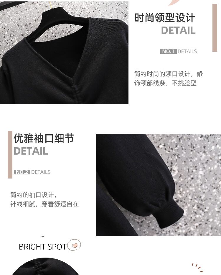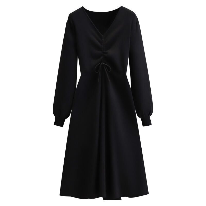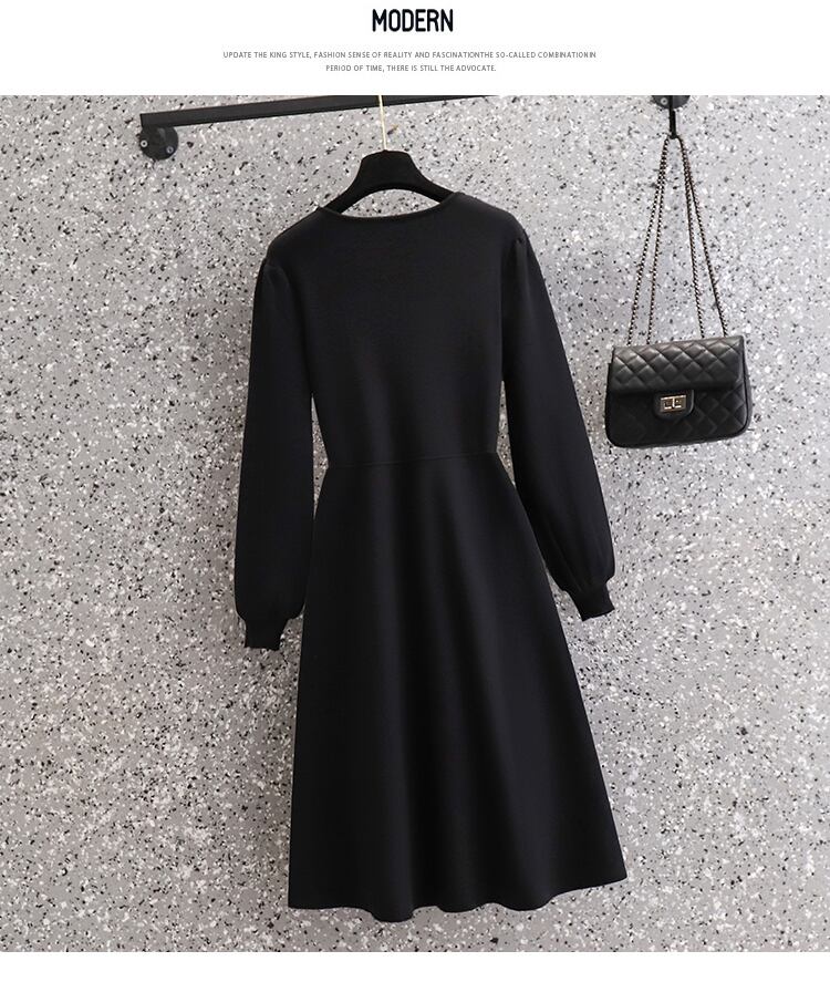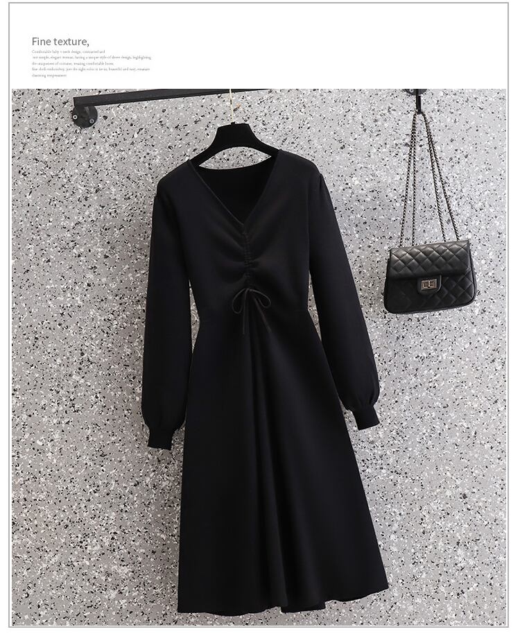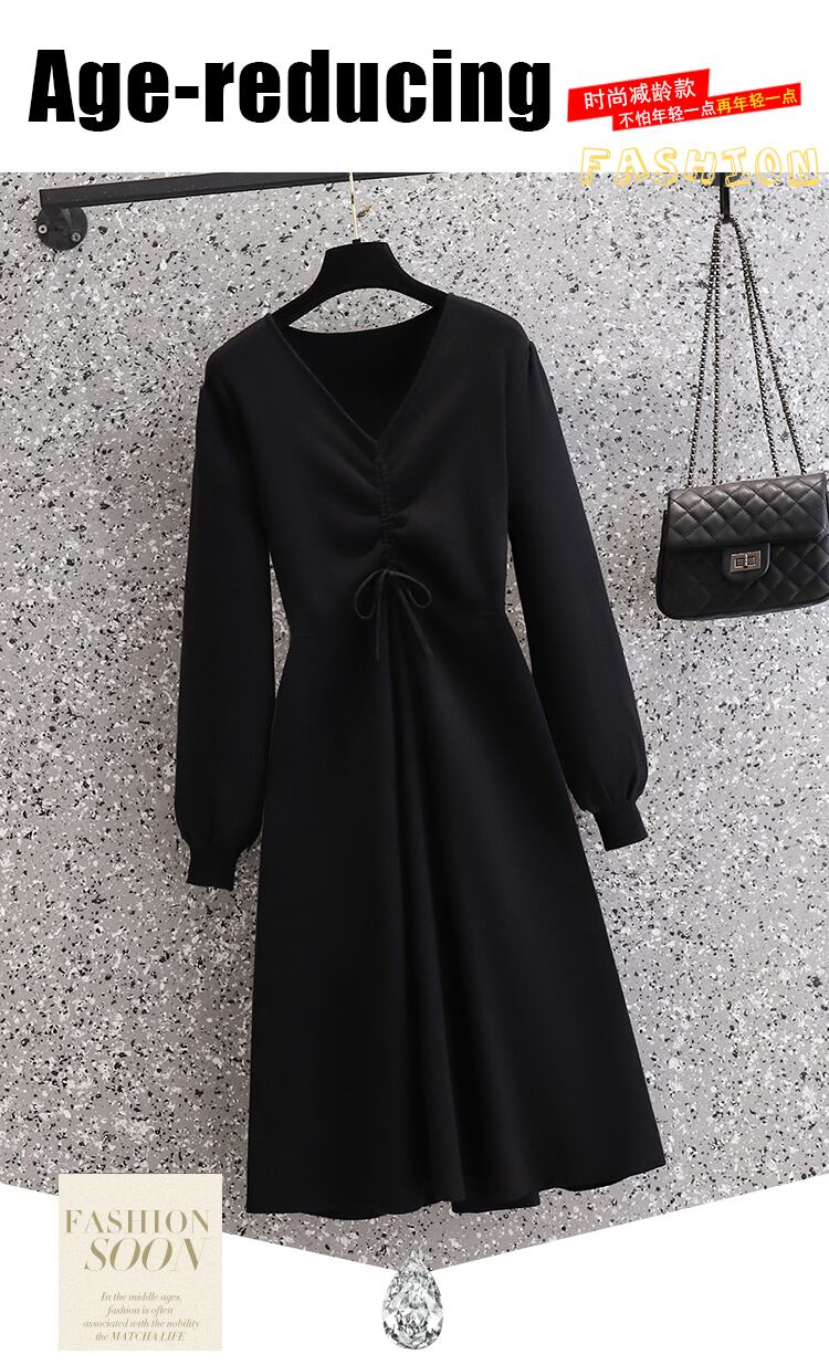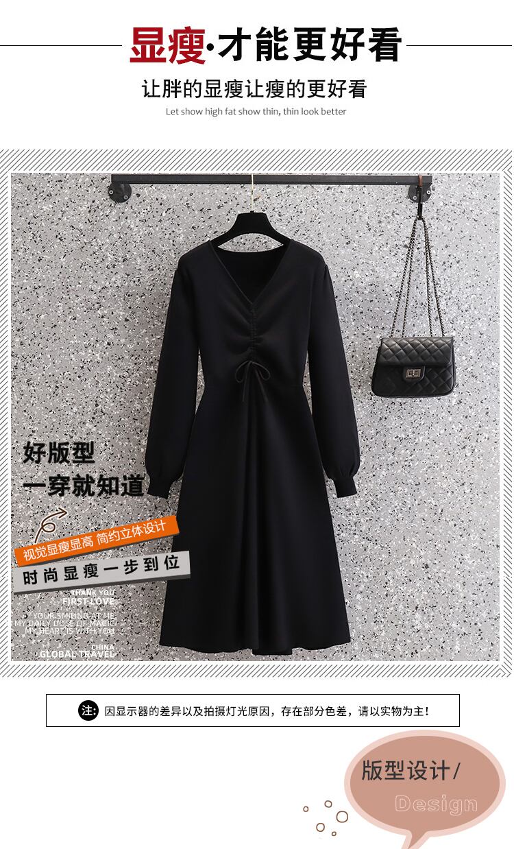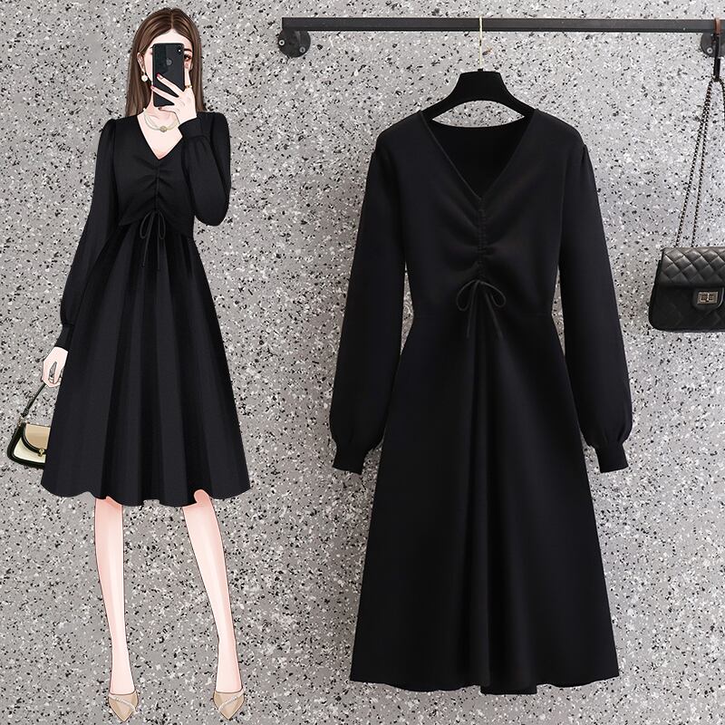 プラスサイズの婦人服 2023 春の新しいファット シスター ウエスト フレンチ スタイル肉カバー V ネック ニッチ シックな無地ドレス 大きめサイズ スプリング 春物 Vネック ソリッドカラー 8884179353248038