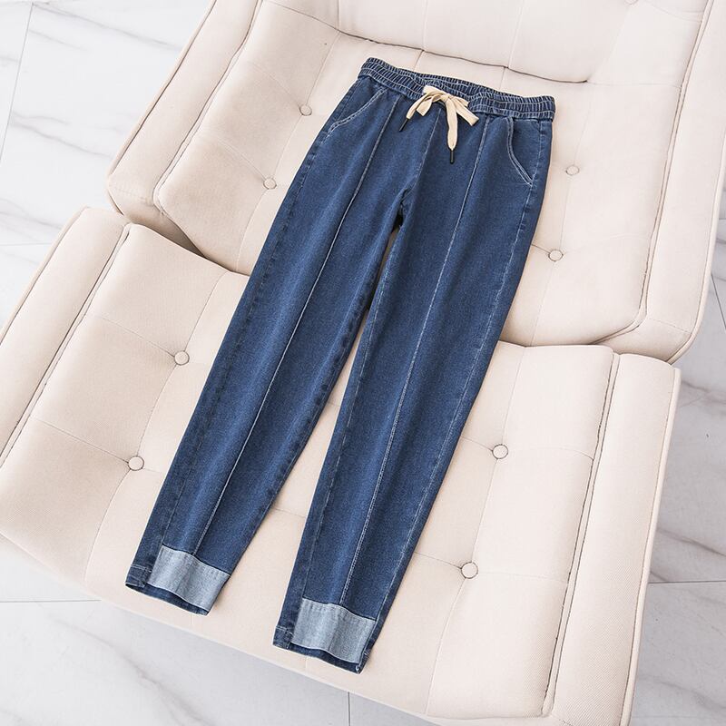 プラスサイズの婦人服 2023 春服ファットシスターズ新しいルーズカジュアルハーレムパンツ気質オールマッチストラップジーンズ 大きめサイズ スプリング 春物 8884150856777711