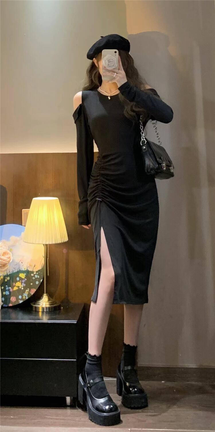 プラスサイズの婦人服 2023 春服ファットシスターズの新しいフレンチデザインの自己修養のストラップレスの腹を覆う薄いドレス 大きめサイズ スプリング 春物 8884146779089712