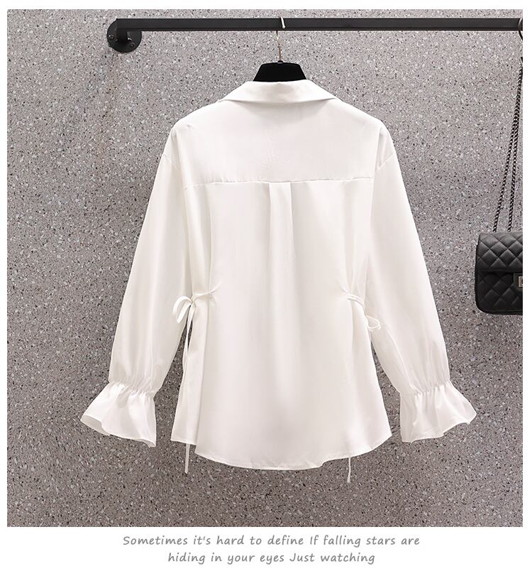 大きいサイズの婦人服 2023 春服 ファット シスターズ 新しい 年齢を下げる ネクタイ ベルト ウエスト 痩身 デザイン ウエスタン スタイル シャツ 女性 大きめサイズ スプリング 春物 ハーネス 8884154090538774