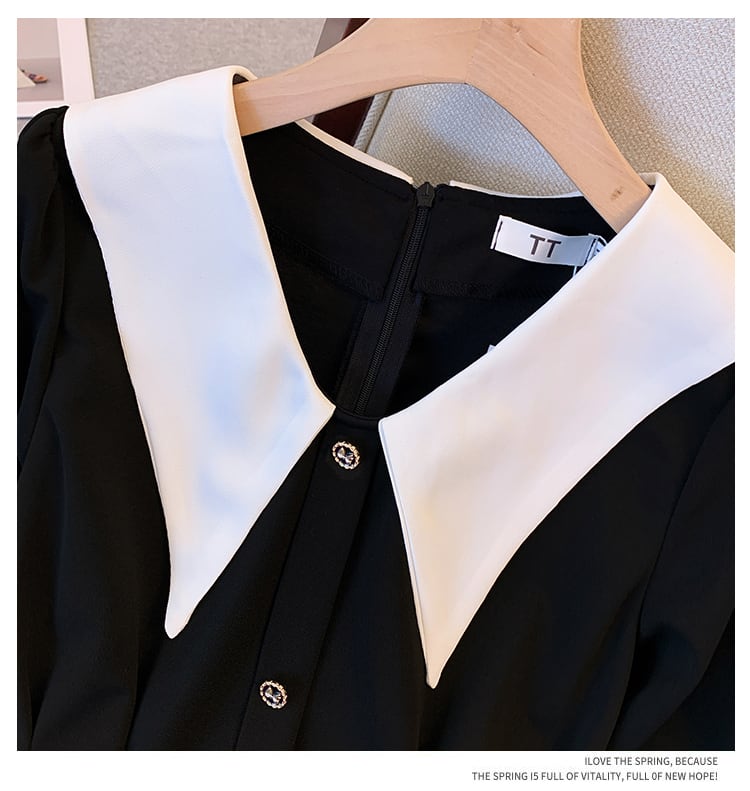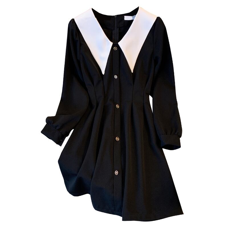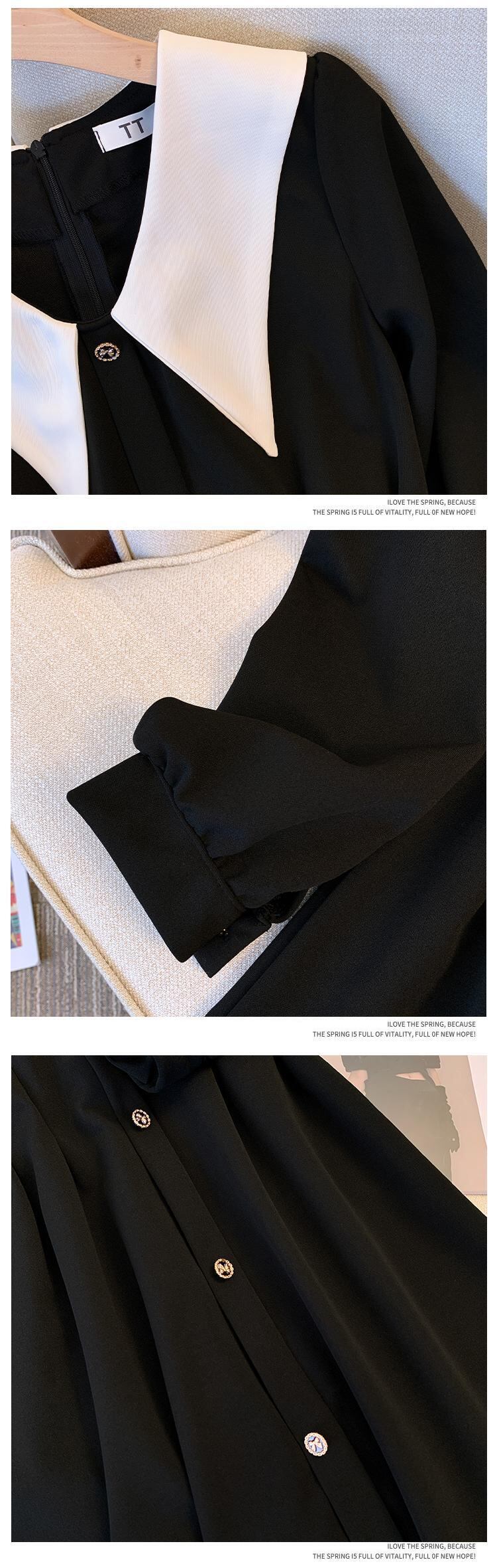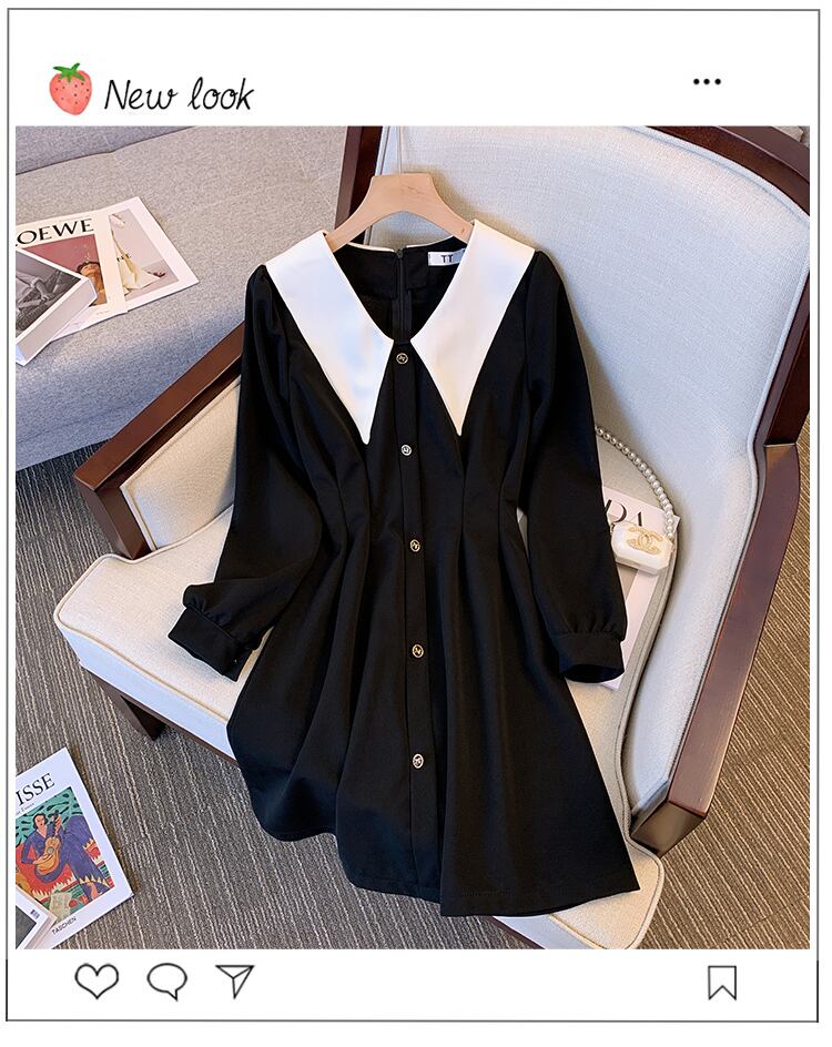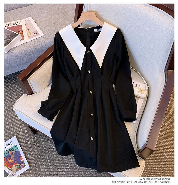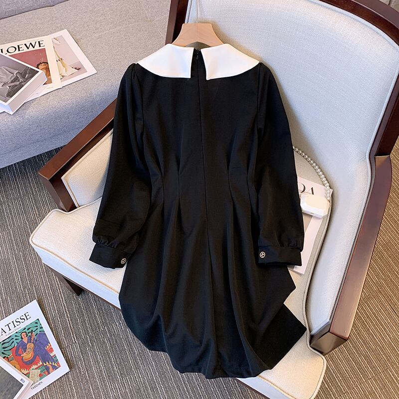 プラスサイズの婦人服 2023 トレンディな女性の春の新しい脂肪姉妹人形の襟無地ウエストウエスト気質長袖ドレストレンディ ロング 大きめサイズ スプリング 春物 ソリッドカラー 888412637274912