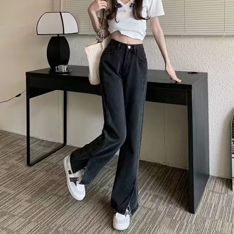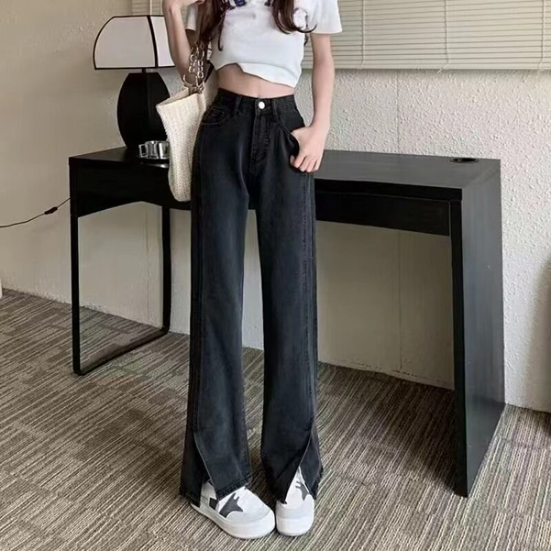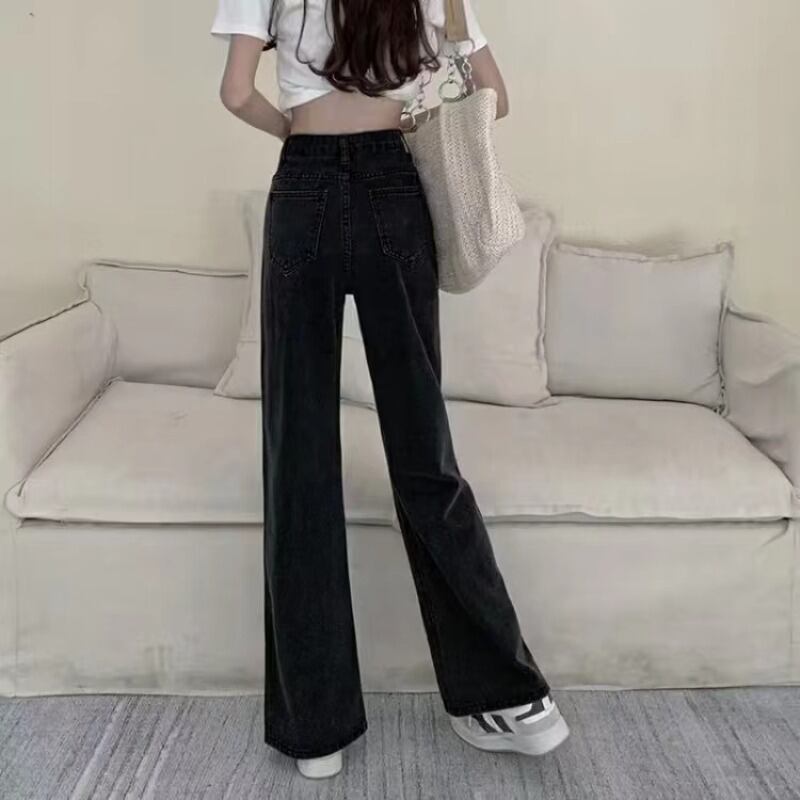 プラスサイズの婦人服2023トレンディな女性の春の新しいファットシスタープラスベルベットの肥厚ハイウエストワイドレッグシンオールマッチジーンズ ハイウェスト 大きめサイズ スプリング 春物 ワイドパンツ 8884175885772987