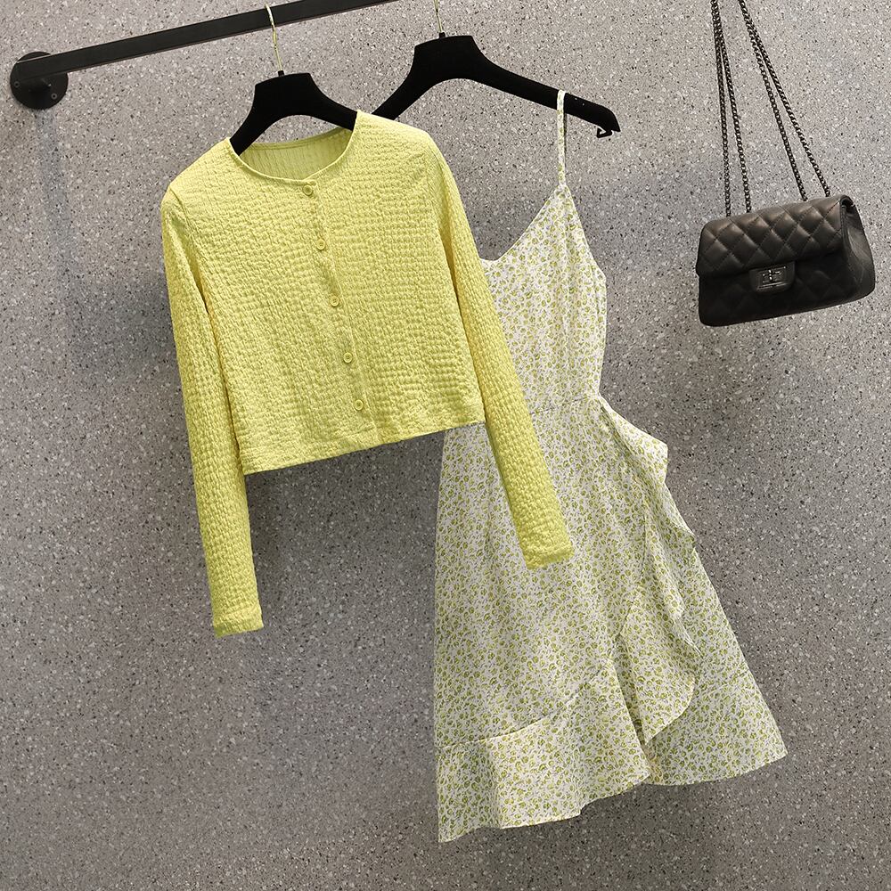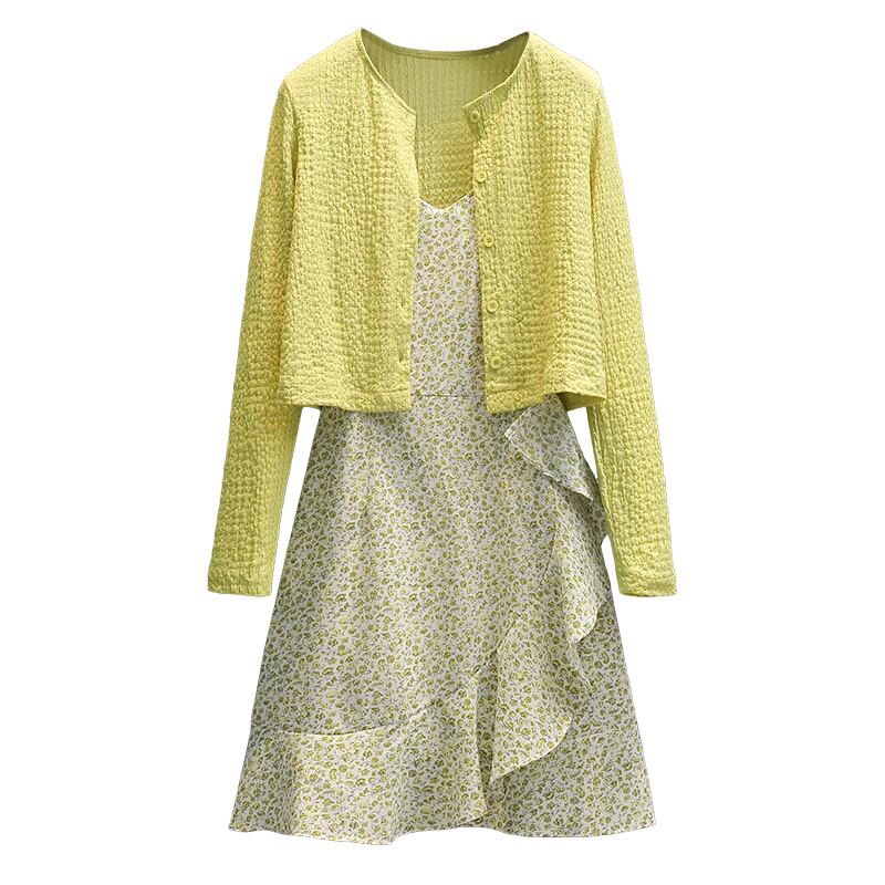 大きいサイズの婦人服 2023 春のファット シスターの新しいファッションの花柄の年齢を減らすドレス ニット カーディガン ツーピース スーツ 大きめサイズ スプリング 春物 8884135211131653