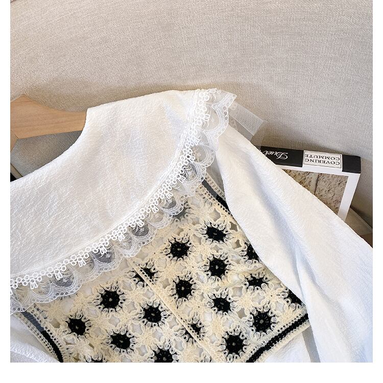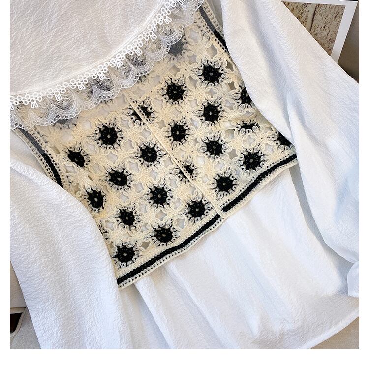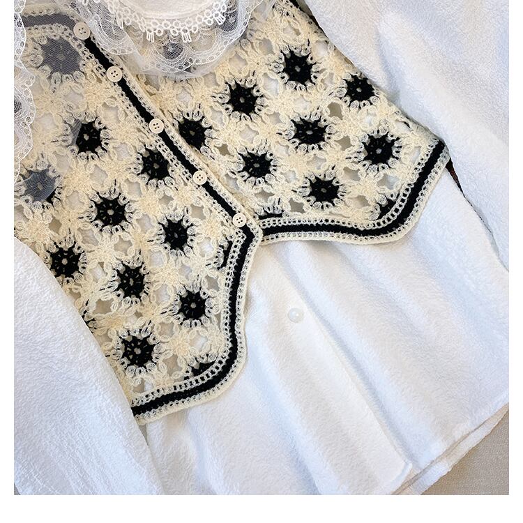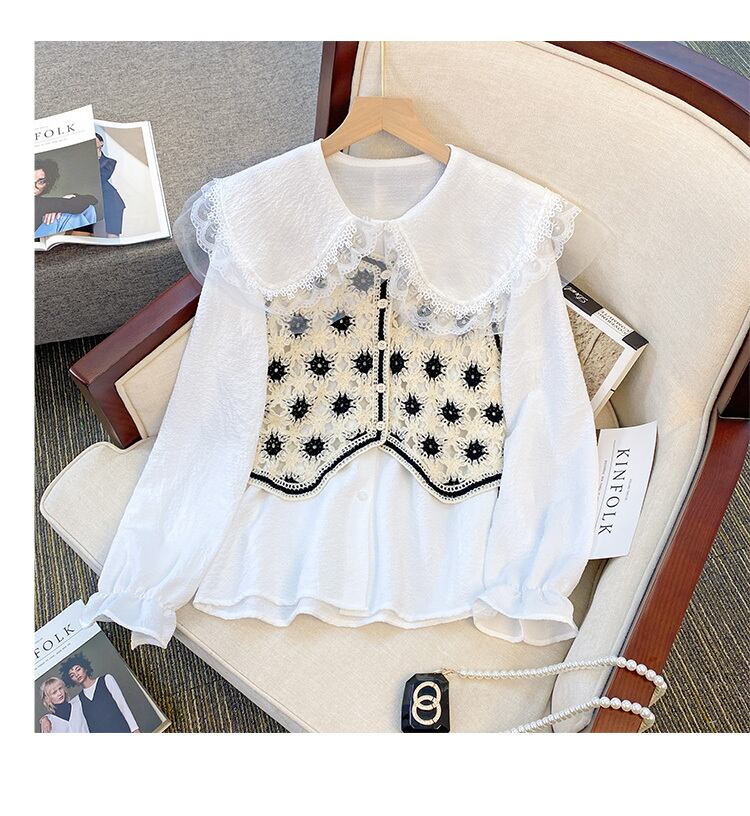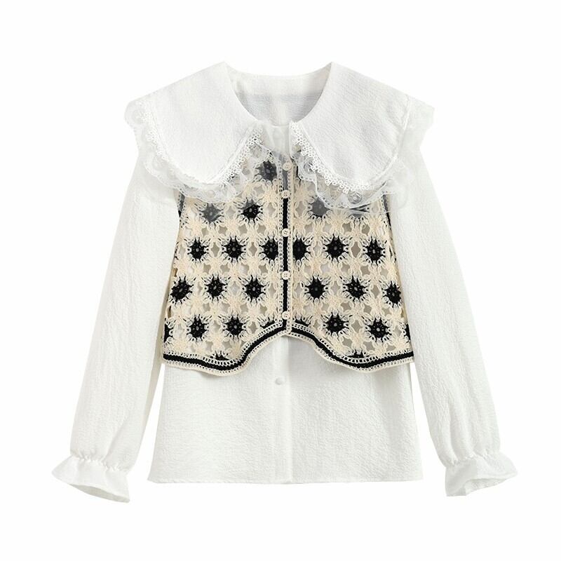 大きいサイズの婦人服 2023 春服脂肪姉妹新しいファッション人形の襟シャツ中空ベスト年齢を減らす 2 点セット 大きめサイズ スプリング 春物 8884137238417575