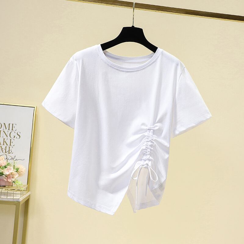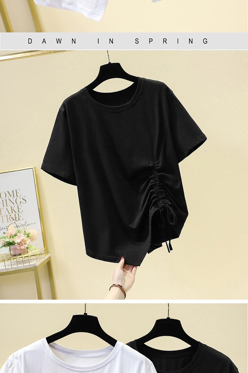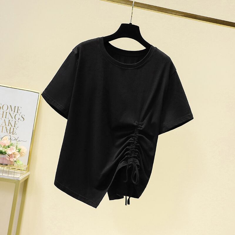 プラスサイズの婦人服2023夏の新しいファットシックなドローストリング不規則なデザインのルーズカジュアルTシャツ 大きめサイズ サマー 夏物 8884110275924358
