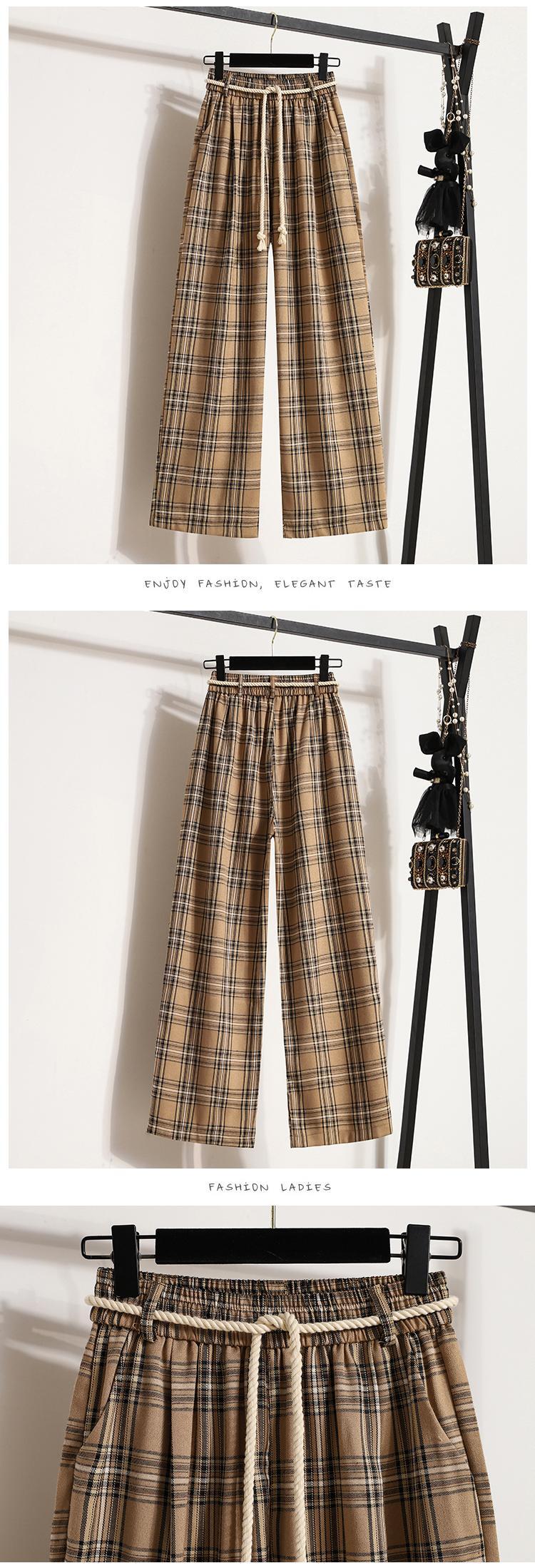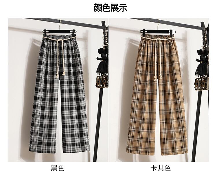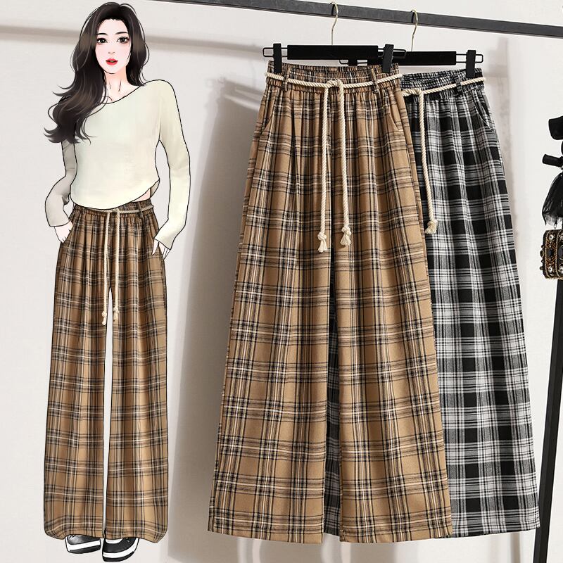 プラスサイズの婦人服 2023 ファットシスター春の新チェック柄パンツストレートワイドレッグパンツカジュアルパンツハイウエストスリムなズボン ハイウェスト 大きめサイズ スプリング 春物 ワイドパンツ 8884178063624826