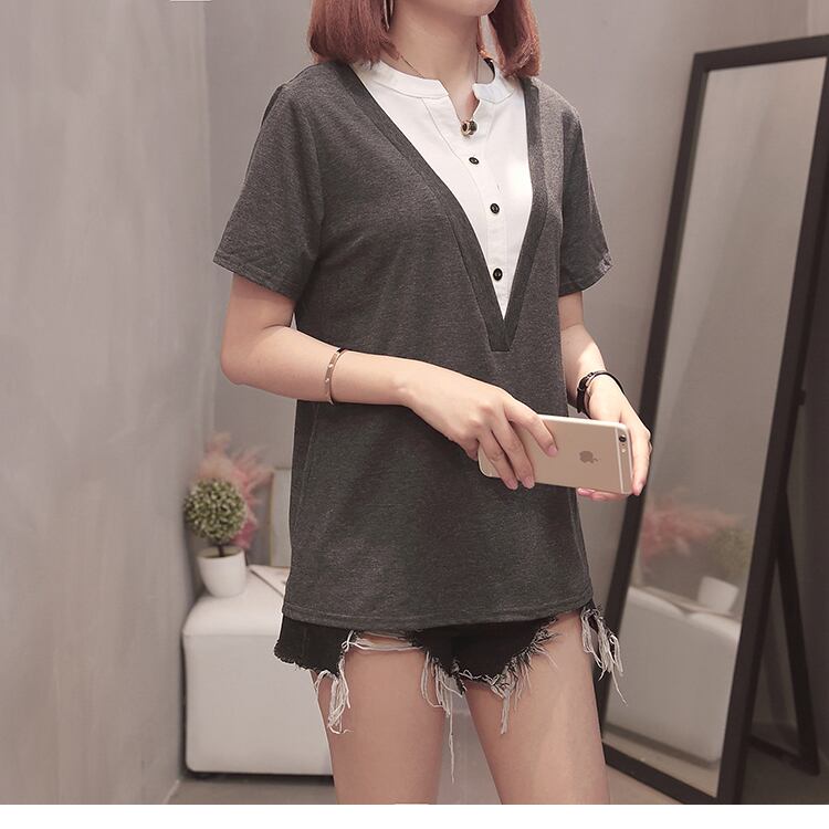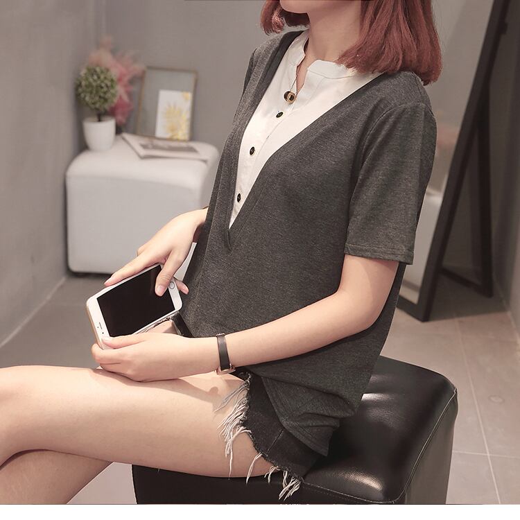 プラスサイズの婦人服 2023 夏の新しいスタイルのファットシスターシックなスプライシングフェイクツーピース気質カジュアルファッショントップ 大きめサイズ サマー 夏物 88841839853641