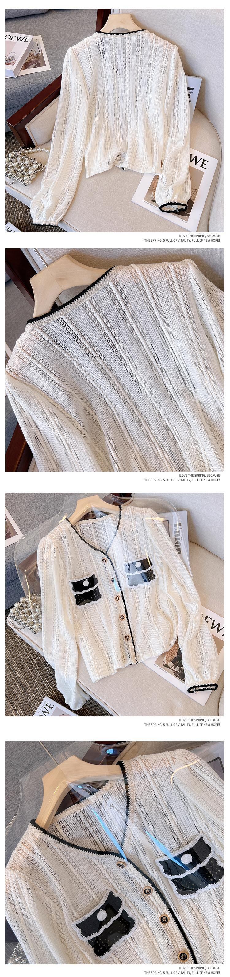 プラスサイズの婦人服2023ファットシスター春の新バージョンオールマッチコントラストカラーVネック中空レースシャツ痩身トップ 大きめサイズ スプリング 春物 888414936629474