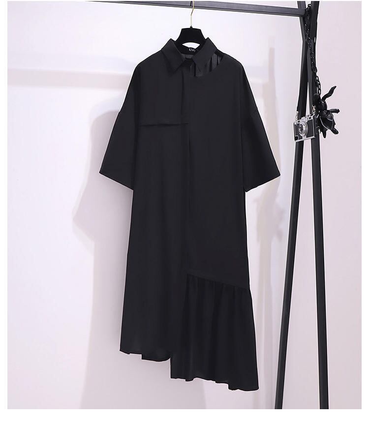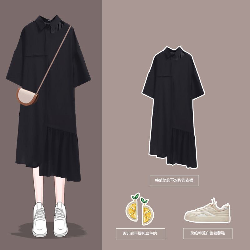 プラスサイズの婦人服 2023 トレンディな女性の春の新しい太った姉妹ファッション カジュアルな腹をカバーする非対称気質オールマッチ ドレス 大きめサイズ スプリング 春物 8884115857754173