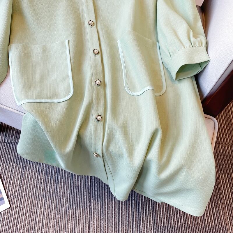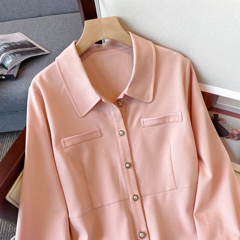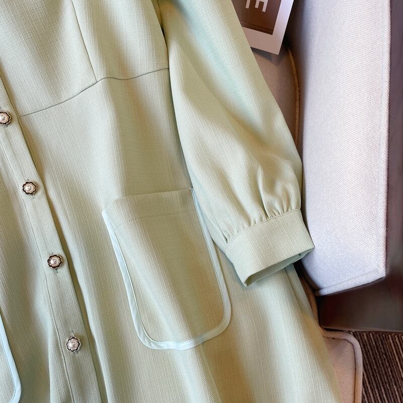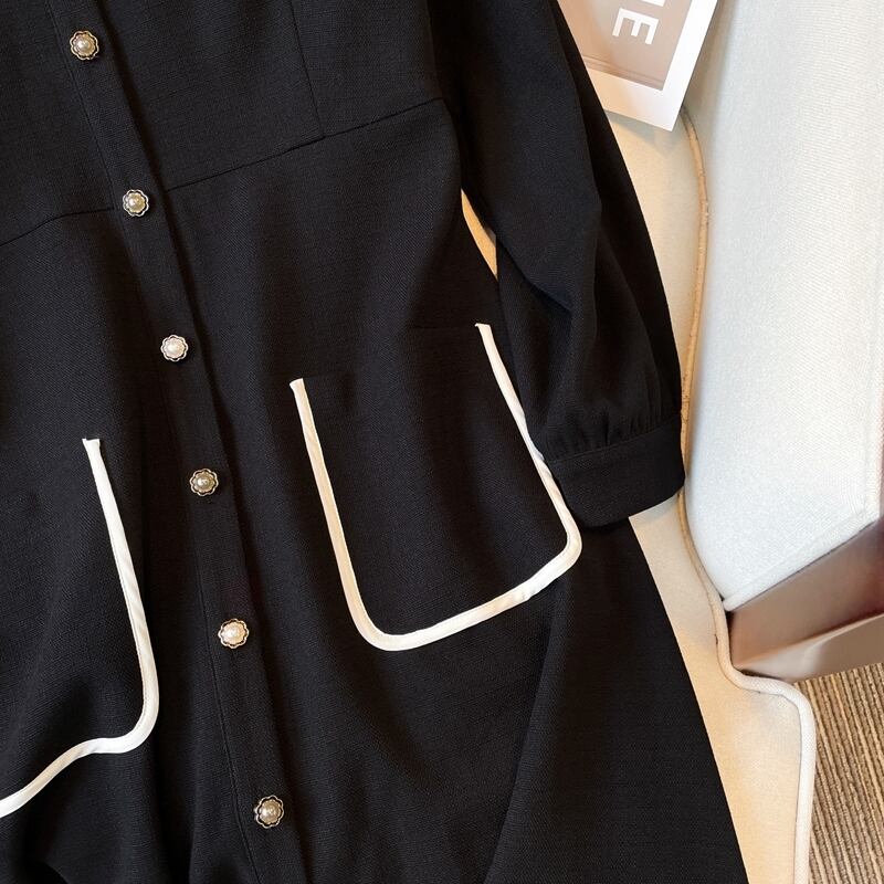 プラスサイズの婦人服 2023 春の服の新しい太った姉妹年齢削減ウエストスリムなステッチの気質無地のドレスの女性 大きめサイズ スプリング 春物 ソリッドカラー 8884170121016072