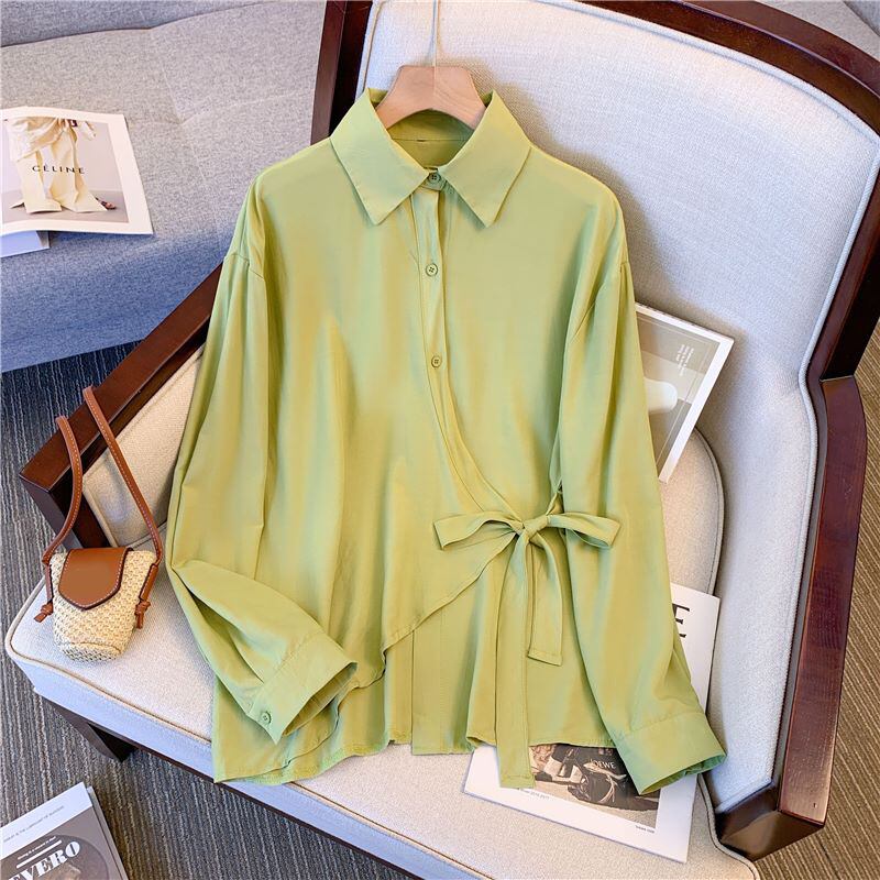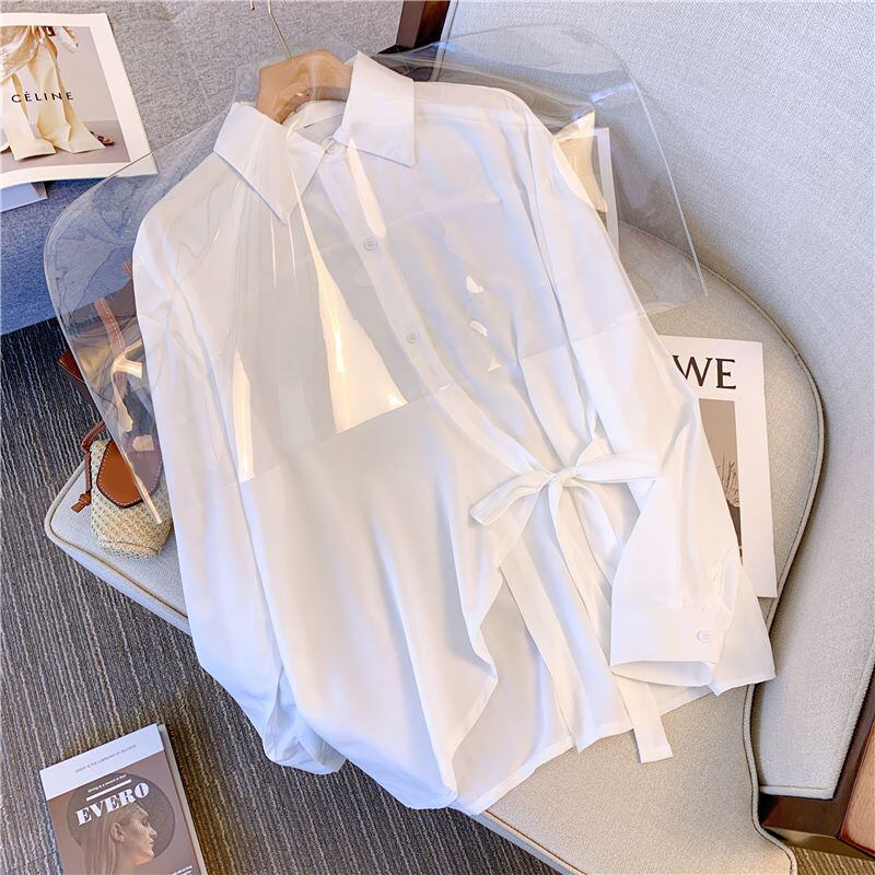 大きいサイズの婦人服 2023 春服脂肪姉妹新しいスタイル eign スタイル無地ウエスト長袖シャツカバー肉トップス小さなシャツ ロング 大きめサイズ スプリング 春物 ソリッドカラー 8884154619857061