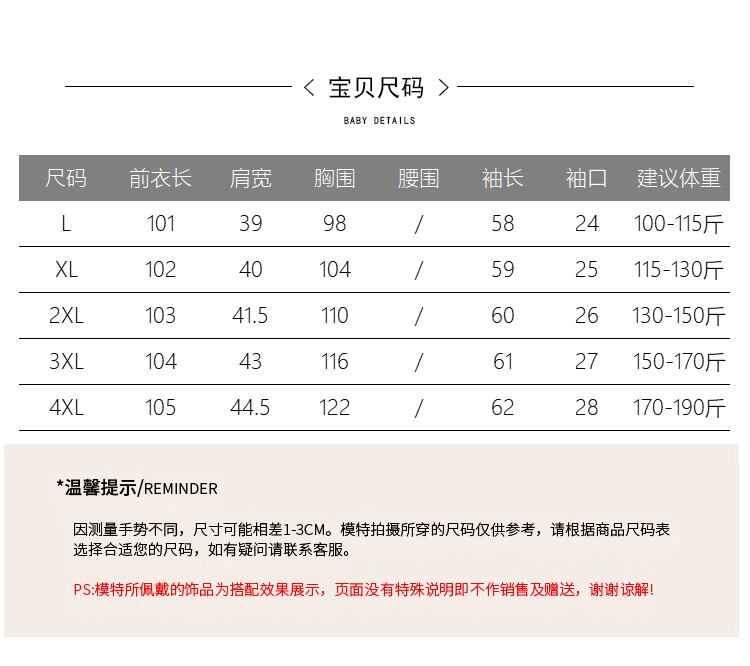 体重表記について、中国は2倍の体重で表記されています。例えば、Lサイズ→推奨90kg〜116kgであれば、45~58kg程度の方が対象になります。海外サイトを使用する方はお気を付けください。