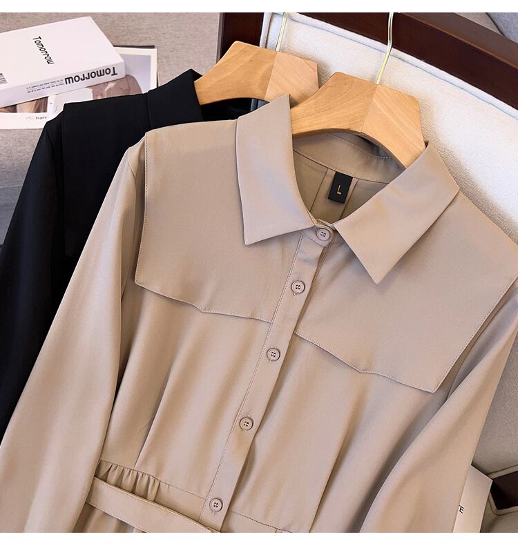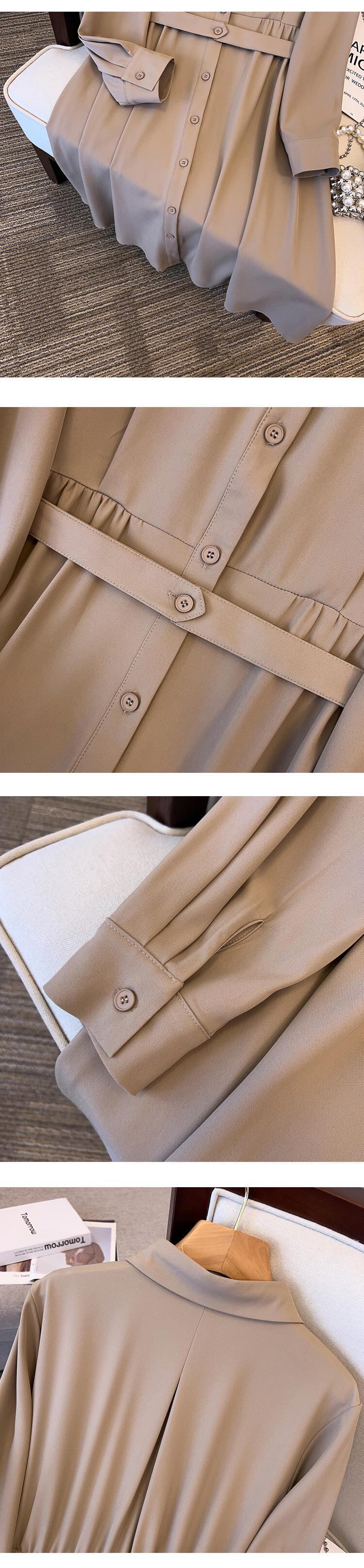 プラスサイズの婦人服 2023 春服脂肪姉妹新スタイル eign スタイルラペルスリムウエストフレンチ長袖ドレス女性 ロング 大きめサイズ スプリング 春物 8884182802095012
