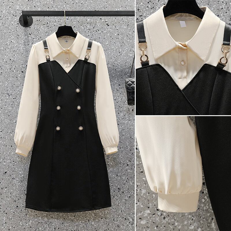 大きいサイズの婦人服 2023 ファット シスター 春の新しいバージョンの年齢を減らす自己修養と薄い気質のフェイク ツーピース ドレス 大きめサイズ スプリング 春物 8884137017429123