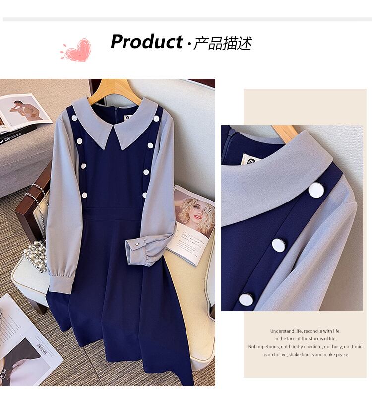 プラスサイズの婦人服 2023 トレンディな女性の春の新しいファットシスターファッションオールマッチカラーコントラストスプライシングフェイクツーピースドレス 大きめサイズ スプリング 春物 8884119577275871