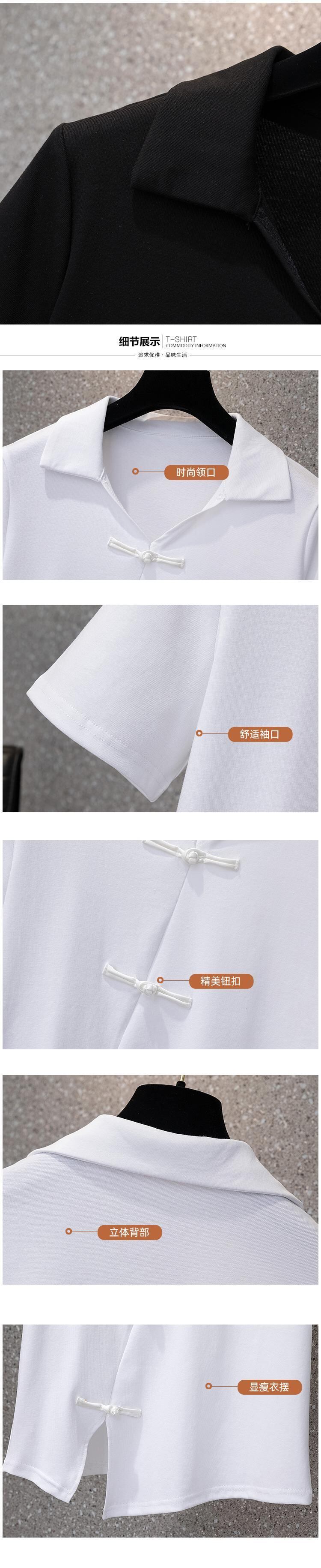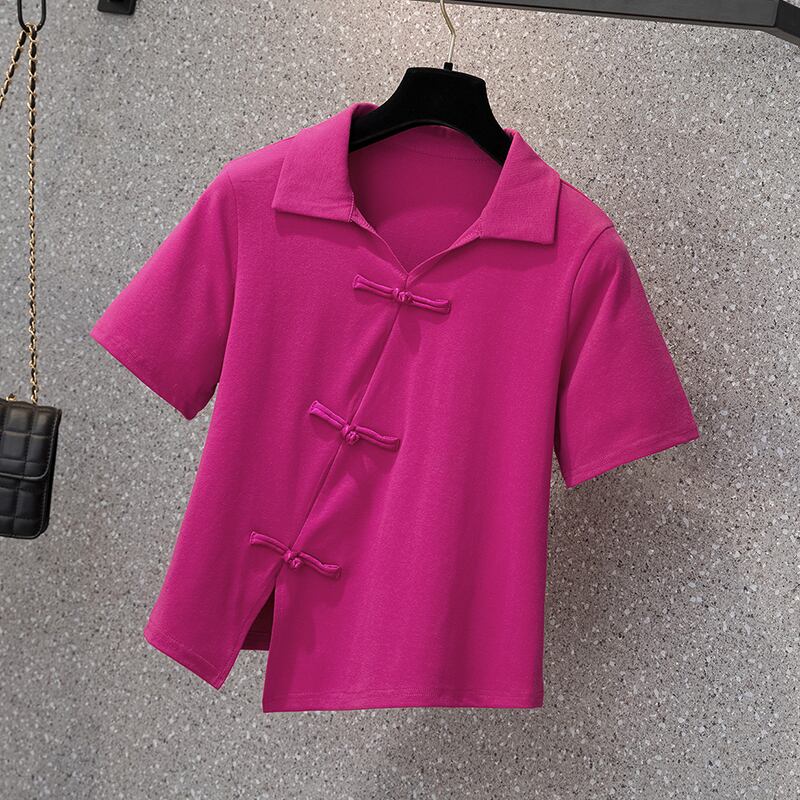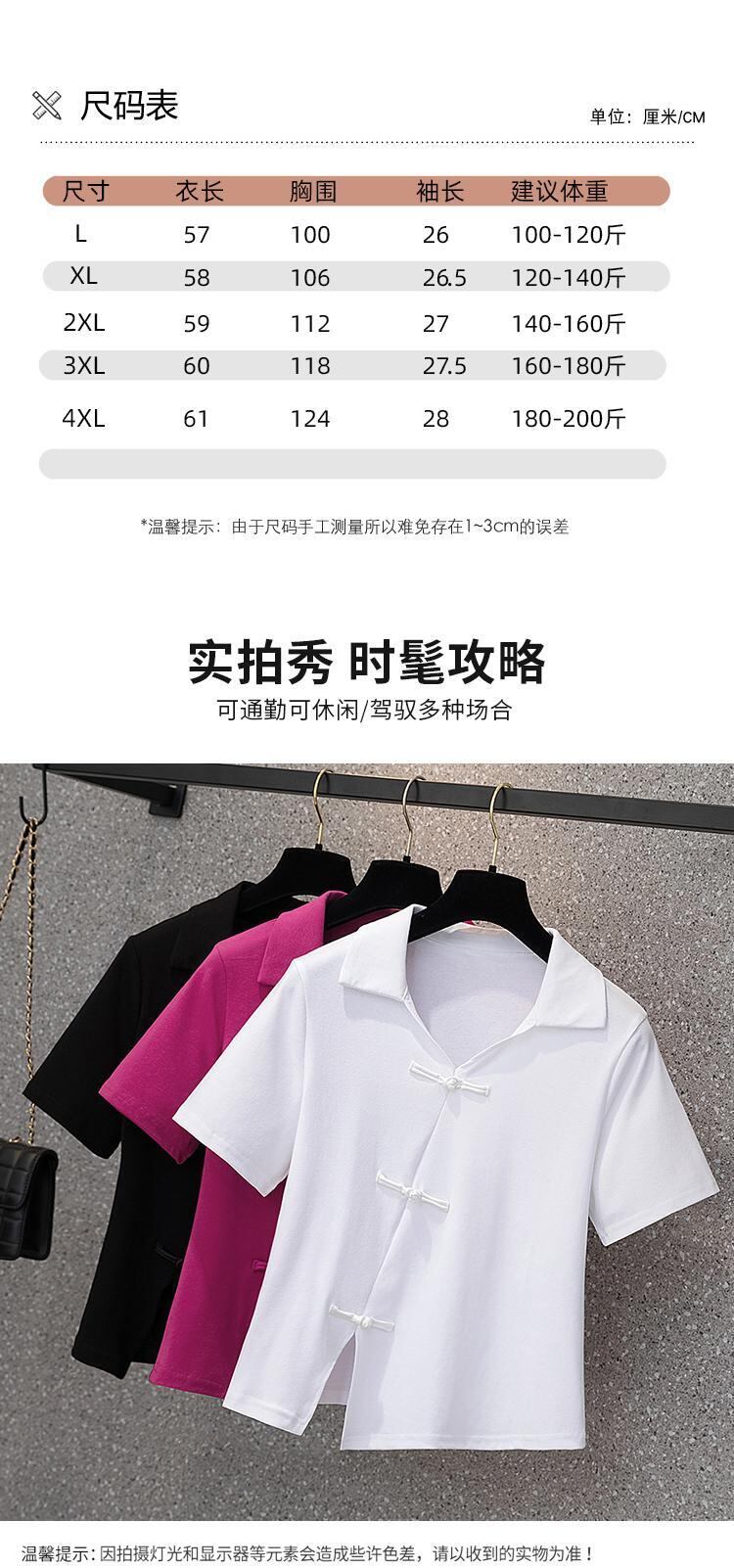 プラスサイズの婦人服 2023 夏の新しいファットシスタースリムバックル気質無地スリットデザインセンス Tシャツ女性 大きめサイズ サマー 夏物 ソリッドカラー 8884194049479173