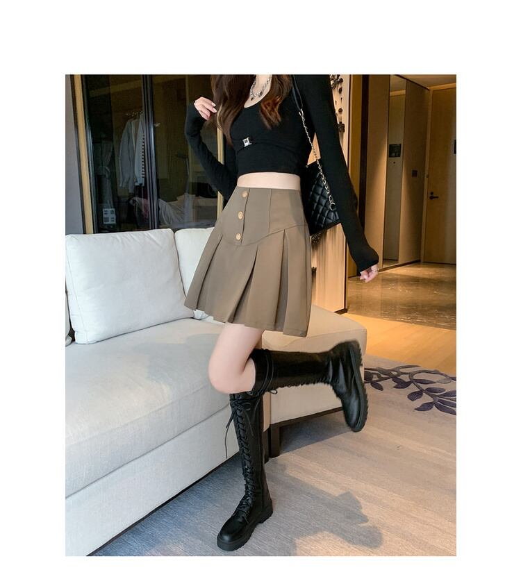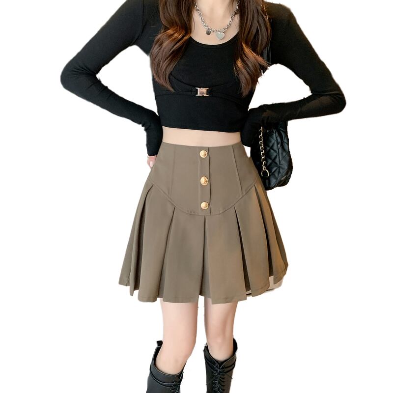 大きいサイズの婦人服 2023 ファットシスター春の新作ハイウエスト A ラインスカートプリーツスカートアンチライトスカート女性 ハイウェスト 大きめサイズ スプリング 春物 Aライン 8884188110573844
