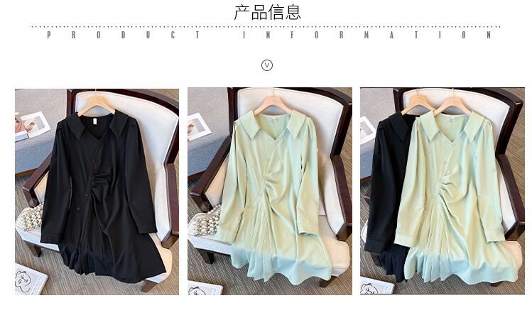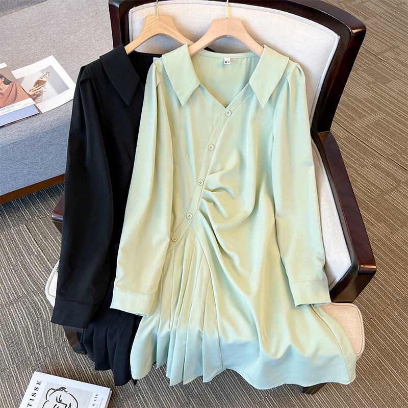 大きいサイズの婦人服 2023 春の新しいスタイルのファットシスター緩いファッション無地デザイン感覚カバーリング肉カジュアルドレス 大きめサイズ スプリング 春物 ソリッドカラー 8884184455445412
