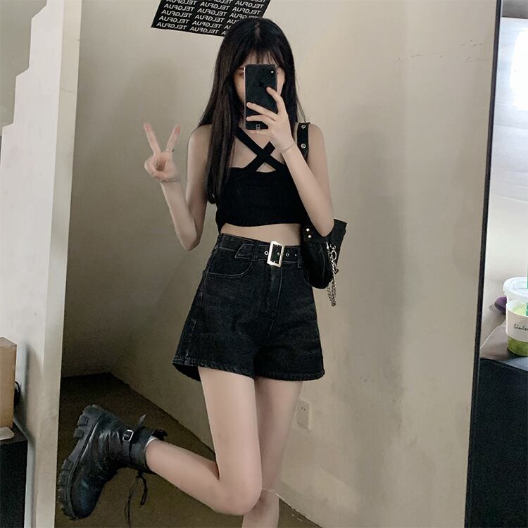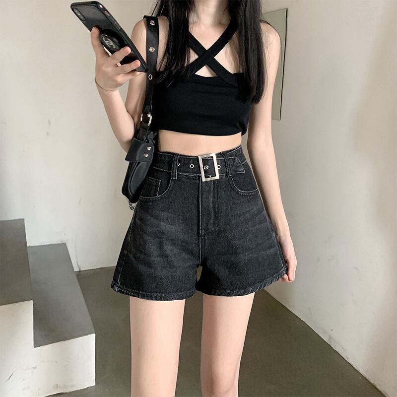 大きいサイズの婦人服 2023 春服ファットシスターズ新しいファッション年齢を減らすオールマッチハイウエスト痩身ベルトデニムショーツ ハイウェスト 大きめサイズ スプリング 春物 ハーネス ブルマー 8884111804649103