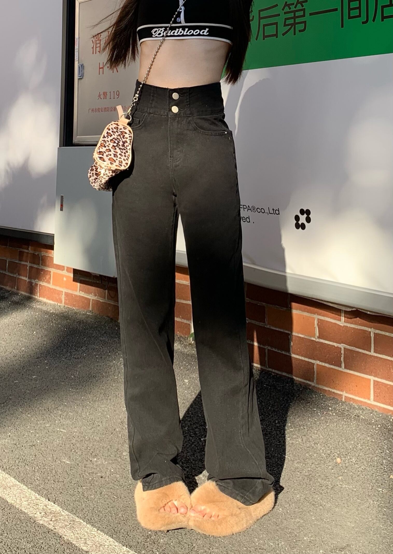 プラスサイズの婦人服 2023 春服脂肪姉妹新ファッションハイウエスト薄型ストレートジーンズレトロワイドレッグパンツ ハイウェスト 大きめサイズ スプリング 春物 ワイドパンツ 8884187626066095