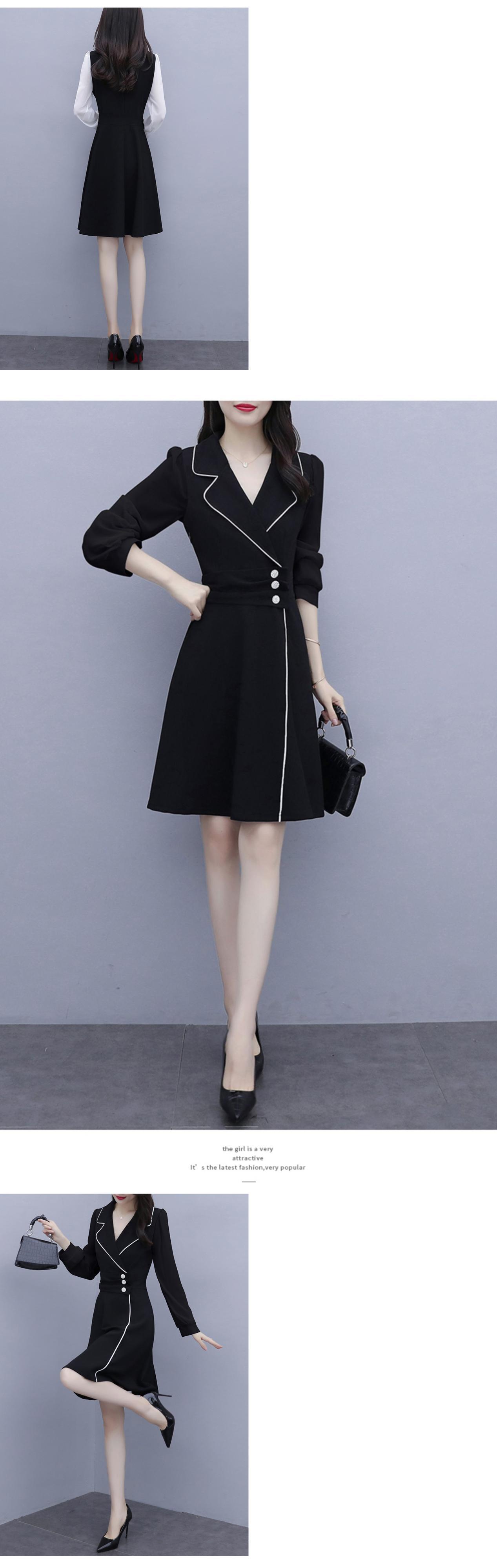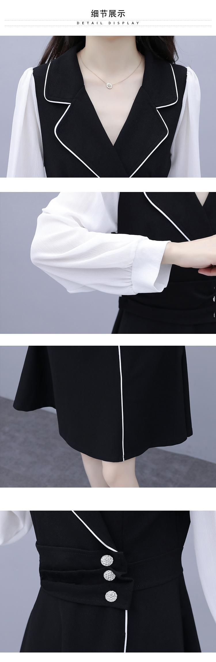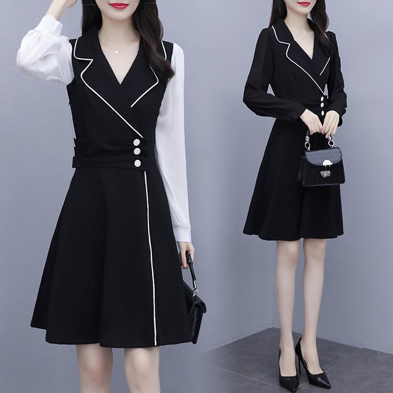 プラスサイズの婦人服 2023 脂肪姉妹春の新しいスーツの襟スプライシングミッドレングスウエスト痩身ドレス女性 大きめサイズ スプリング 春物 8884138213670201