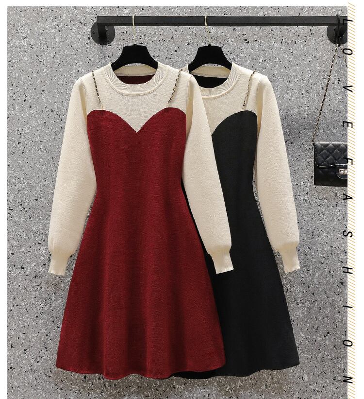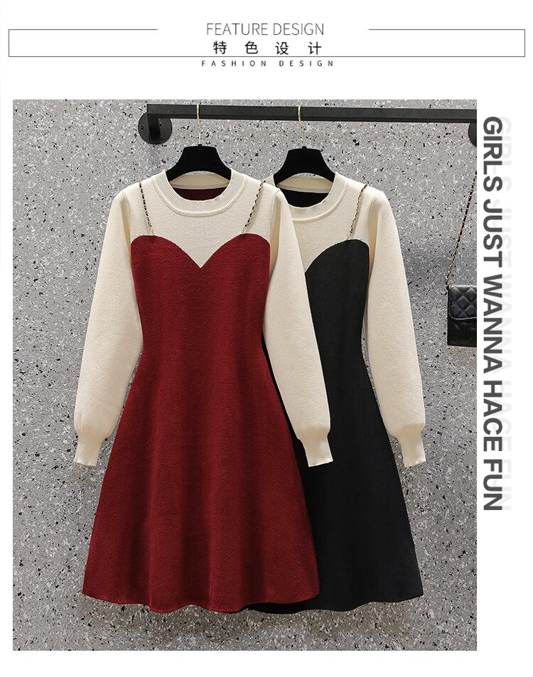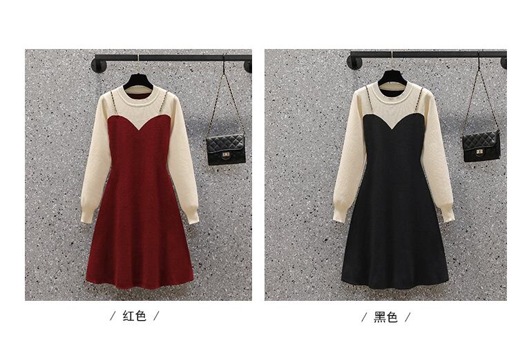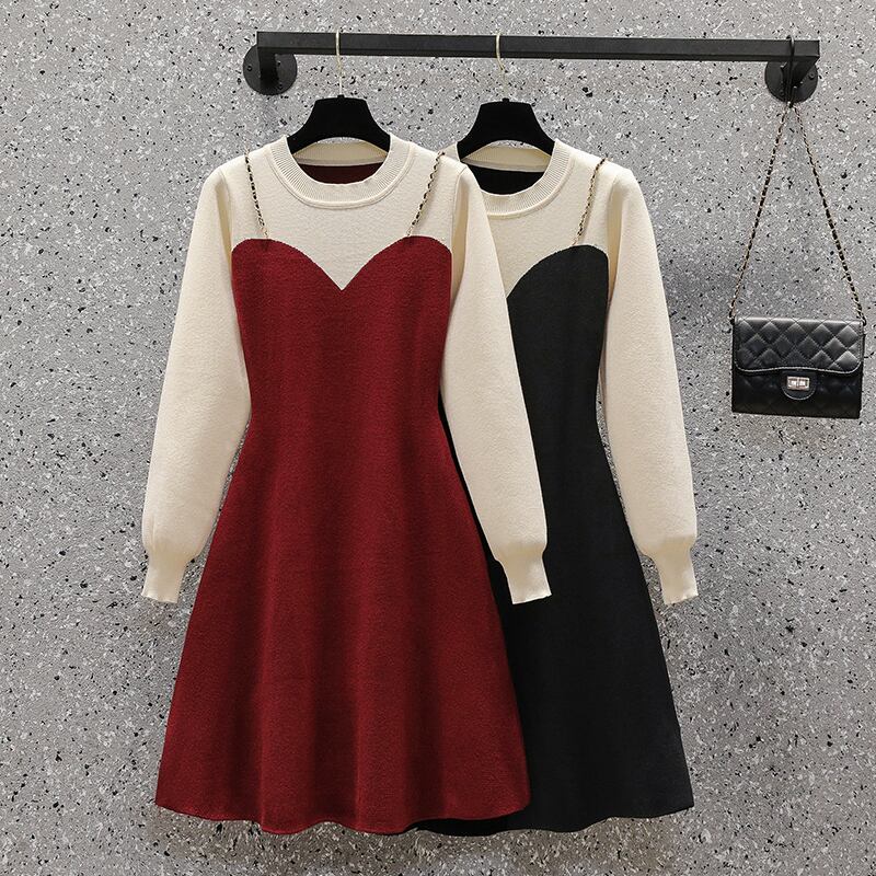 プラスサイズの女性の 2023 春服脂肪姉妹薄い気質多彩なウエストフェイクツーピースドレス 大きめサイズ スプリング 春物 8884189350510565